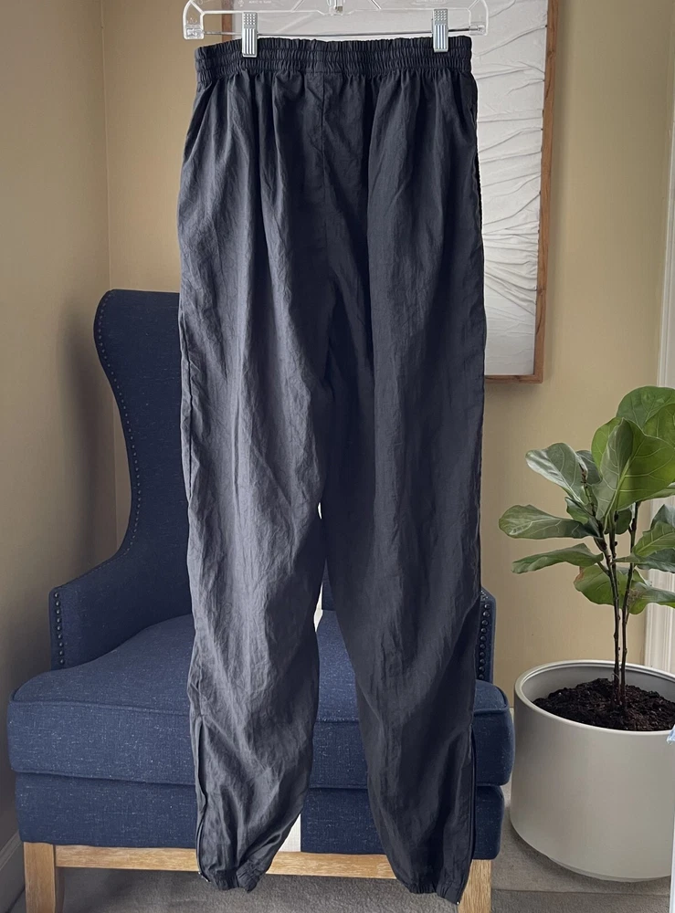 Men's vintage REEBOK pants, size Medium. Black. Elastic waist with drawstring. Hand pockets. Zippered ankles. In excellent, gently worn condition. Measurements: approx. 17"-42" waist, 32" inseam Thank you so much for your interest! Please feel free to message with any questions.