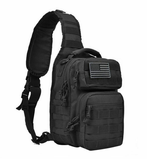 Description Desc.: Tactical Rover Sling Bag Pack Small size with Tactical US Flag Patch Sling pack is made of durable 600D fabric water-resistant, and size: 12 * 9.5 * 6 inch (H*W*D), it's enough for carrying 9.7 iPad, small notepad, keys, wallet, cell phone, flashlight, gloves, bottle of water,etc. on a daily basis. Tactical sling bag with large Velcro pad in the concealed main compartment and the back compartment. Awesome as a pistol range bag for 1-2 handguns and lots of ammo or as tactical assault pack. Sling bag backpack has adjustable and comfortable shoulder strap, and also has two smaller straps they help reduce the sway of the bag while moving as small military rover shoulder sling backpack. It allows you to configure your pack to carry it as a Sling bag, Chest Pouch, tactical pack or simply Hand Carry it by the Hand Strap. A generous number of dividers, straps, clips, loops, pockets, and snaps give this Compatible Pack endless configurations for whatever your specific needs are. Small tactical rover sling pack with molle as sling day pack or EDC bag, it's made of durable 600D polyster.Durable and water-resistant. Sling pack size: 12 * 9.5 * 6 inch (H*W*D), enough for carrying 9.7 iPad, small notepad, keys, wallet, cell phone, flashlight, gloves, bottle of water, chargers etc. on a daily basis Tactical sling bag with large Velcro pad in the concealed main compartment and the back compartment. Awesome as a pistol range bag for 1-2 handguns and lots of ammo or as tactical assault pack. Sling bag backpack has adjustable and comfortable shoulder strap, and also has two smaller straps to help reduce the sway of the bag while moving as small military rover shoulder sling backpack. Sling pack is a great small tactical sling range bag or travel sling bag to take on small trips or go hammocking for a little bit where you may require some snacks or other relatively small items.