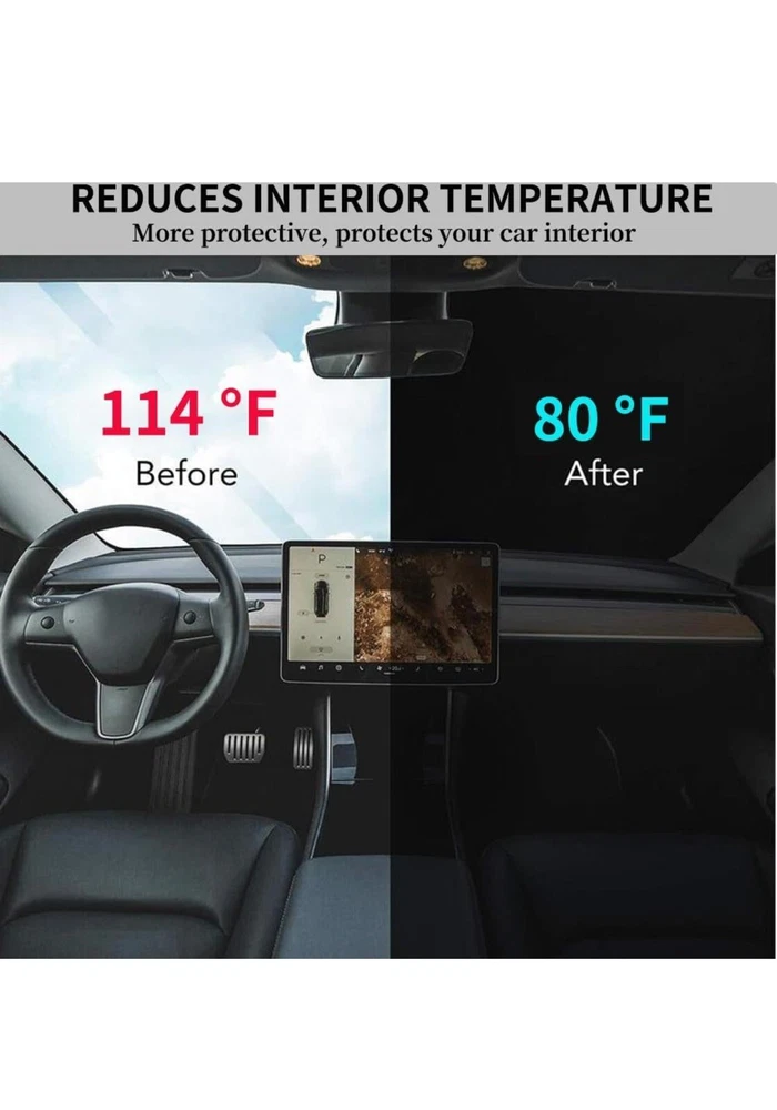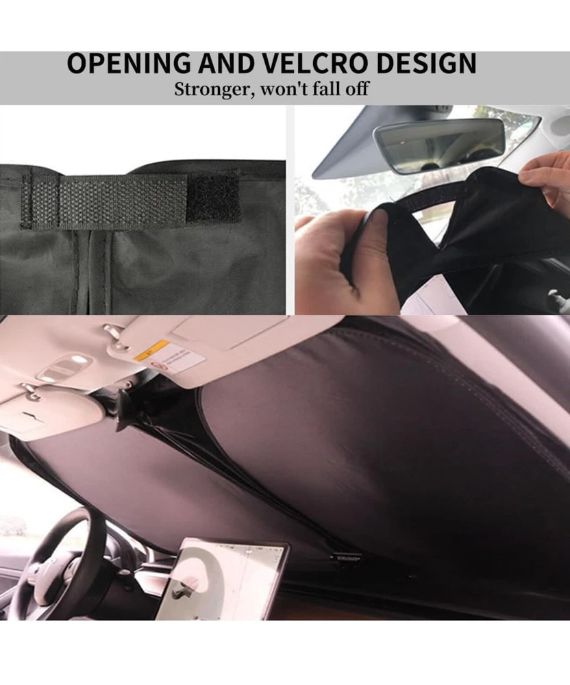 REEVAA 2024 Newest Tesla Model 3 Sunshade Windshield Accessories [Dual-Silver Coating] [300D Oxford] Foldable Front Window Sunshade, Car Interior Protection, Fit Tesla Model 3 2016-2024, Silver Black LM 249/9967