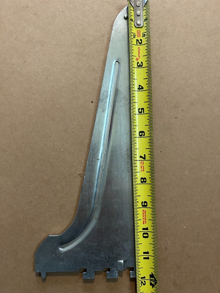 For sale is a REEVE metal shelf bracket measuring 12 inches in length and 4.5 inches in width. This heavy-duty bracket features a reinforced design for added strength, making it perfect for supporting heavier loads. Made from high-quality galvanized steel, it is corrosion-resistant and built to last. Minor scuffs and wear are visible but do not affect functionality. Ideal for garage, workshop, or storage shelving systems. Keywords: REEVE shelf bracket, metal shelf support, reinforced shelf bracket, heavy-duty shelf bracket, galvanized steel shelf holder, workshop shelving hardware. Brand: REEVE Type: Metal Shelf Bracket Material: Galvanized Steel Dimensions: Length: 12 inches Width: 4.5 inches Condition: Pre-owned, with minor wear and scuffs visible on the surface. Application: Ideal for shelving systems in garages, workshops, or storage areas. Features: Heavy-duty, reinforced design for added strength, corrosion-resistant, and easy to install.