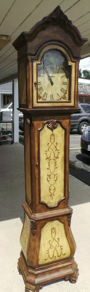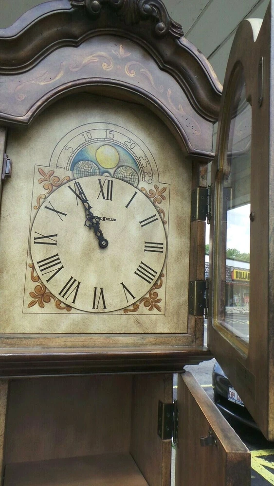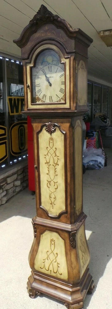 HOWARD MILLER GRANDFATHER CLOCK 84" X 20" PREOWNED IN VERY GOOD CONDITION NO SHIPPING LOCAL PICK UP ONLY ABOUT US: RJ JEWELRY was established in 1995. Since then we have grown to have 4 stores centrally located in metropolitan Chicago area. We are member of BBB (Better Business Bureau). We give loans on almost anything of value such as diamonds, gold, electronics, tools, & more. As an established company , we will stand behind the products we sell. You could be assured that, even though you shop with many uncertainties, RJ Jewelry will be there for you to answer any questions or concerns. We offer complete line of jewelry services from ring sizing , chain soldering, stone remount to extreme hard to repair jewelry. We specialize in custom design jewelry piece. You may contact us at [phone removed by eBay] Monday through Friday 9:00 am to 7:00 pm , Saturday & Sunday 10:00 a.m. to 6:.00 p.m. (Central Standard Time). We are open 7 days a week. WEBSITE: www.rjjewelryandloan.com SATISFACTION WARRANTY: INTEGRITY - TRUST - GOOD SERVICE Our 100% MONEY BACK GUARANTEE is your assurance that we stand 100% behind our products. If you are not satisfied for any reason, you may return the item within 7 days for a full refund less shipping & insurance cost. PAYMENT INSTRUCTIONS: You may use Paypal as your most convenient form of payment: RJ JEWELRY & LOAN CO. 1240 Bloomingdale Rd., Glendale Heights, Illinois 60139. All payments must be received within 5 days of the day of the auction ended. We combine shipping for jewelry only. SHIPPING POLICY: Rj jewelry ships Worldwide as long as the customer accepts all charges for shipping, please contact us before bidding on our items for shipping costs outside the United States.We use USPS priority mail and UPS ground. It takes 1-2 business days upon receipt of payment for us to process items for shipping. USPS priority mail takes approximately 2-3 business days and UPS GROUND service could take from 2 to 5 business days depending upon delivery address. We use Global Priority Mail for international shipping. RETURN POLICY: Items can be returned within 30 days for a full money back refund as stated on our satisfaction warranty policy. FEEDBACK: Every Ebayer looks for very good feedbacks to eliminate any uncertainties in bidding on an item. It is very important in this business so we protect ours by providing good service and honest way of doing business. We leave feedback as soon as the item is paid for and the payment is cleared, so we ask that you do the same upon receiving your item and of course you are satisfied. In case that you are not, please let us know first before leaving your feedback, so we could make an arrangement to make you happy and satisfied with your purchase. SPECIAL REQUEST: Should you have any special request regarding an item, please contact us before bidding , so that we may take alternate arrangements. We offer sizing of rings at no charge (1 to 2 sizes only)
