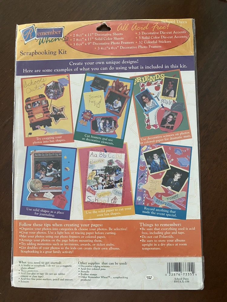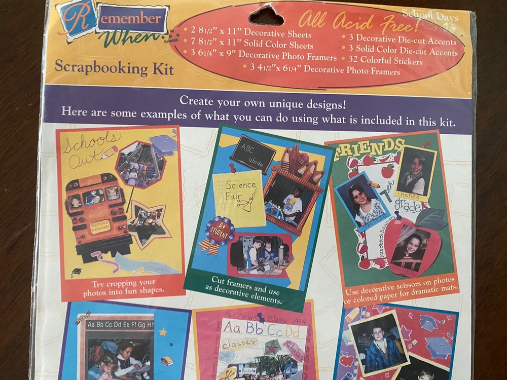 REMEMBER WHEN School Days DELUXE SCRAPBOOKING KIT NEW IN PACKAGE ACID FREE. Please see photos because it will tell what’s included and give lots of detail