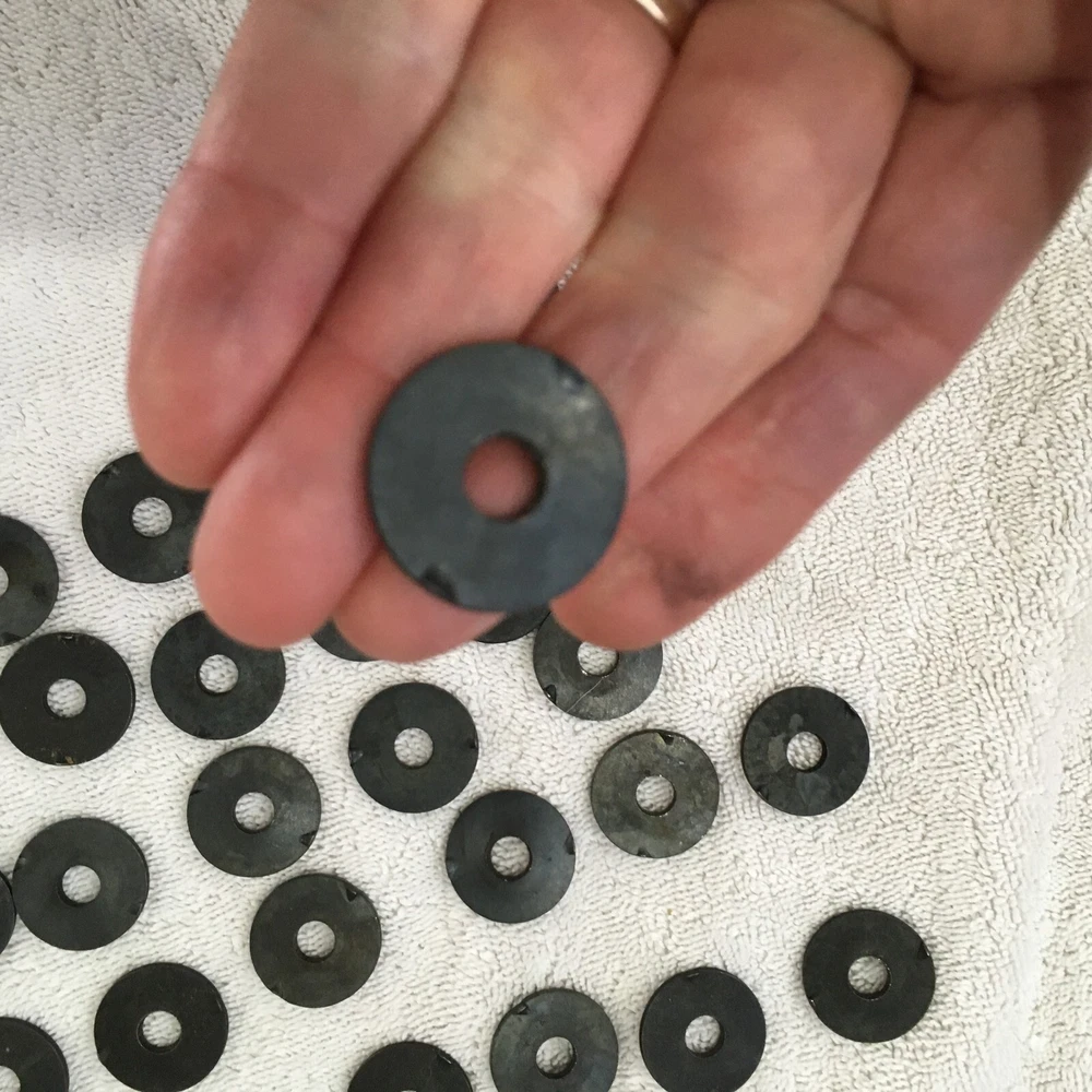 4 used Remington 870 stock washers for use with wooden stocks. These are old takeoff from a gun shop that retrofitted 870's with synthetic stocks years ago. I have 20 sets of 4 available to start. Please refer to images. Glad to combine freight when possible, please message me prior to paying for an invoice with combined freight amount. USA shipping only. Message any questions or for more images. Thanks for looking!