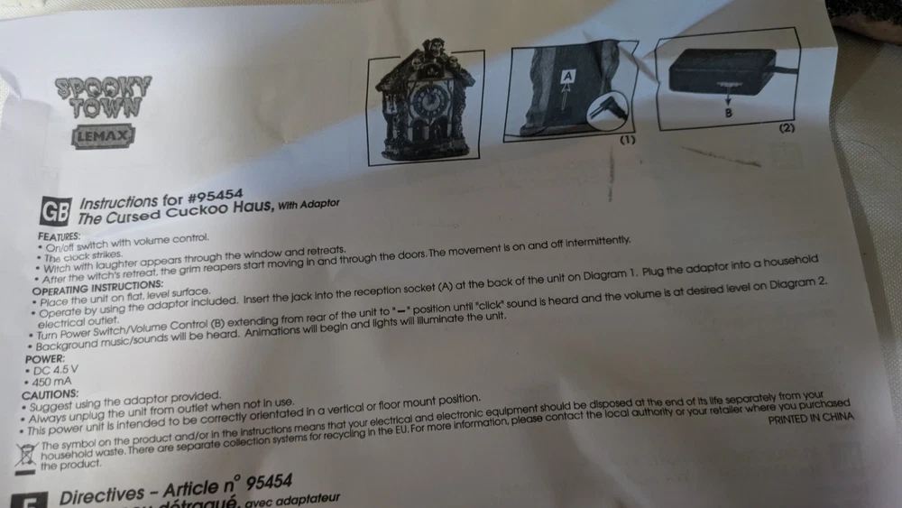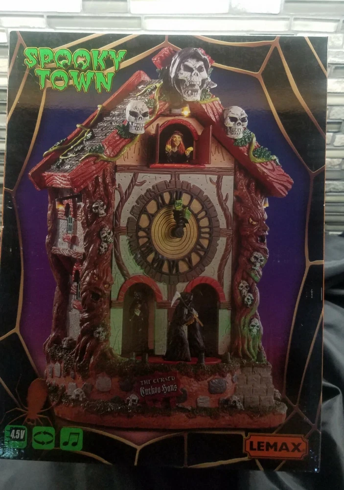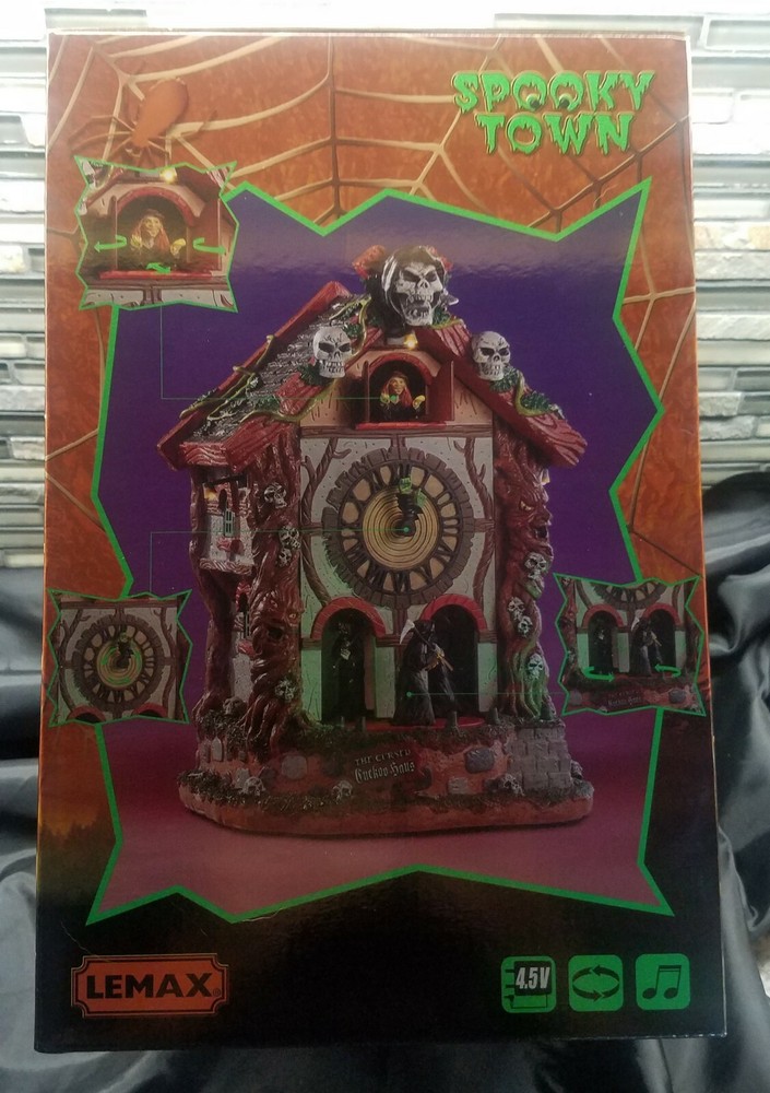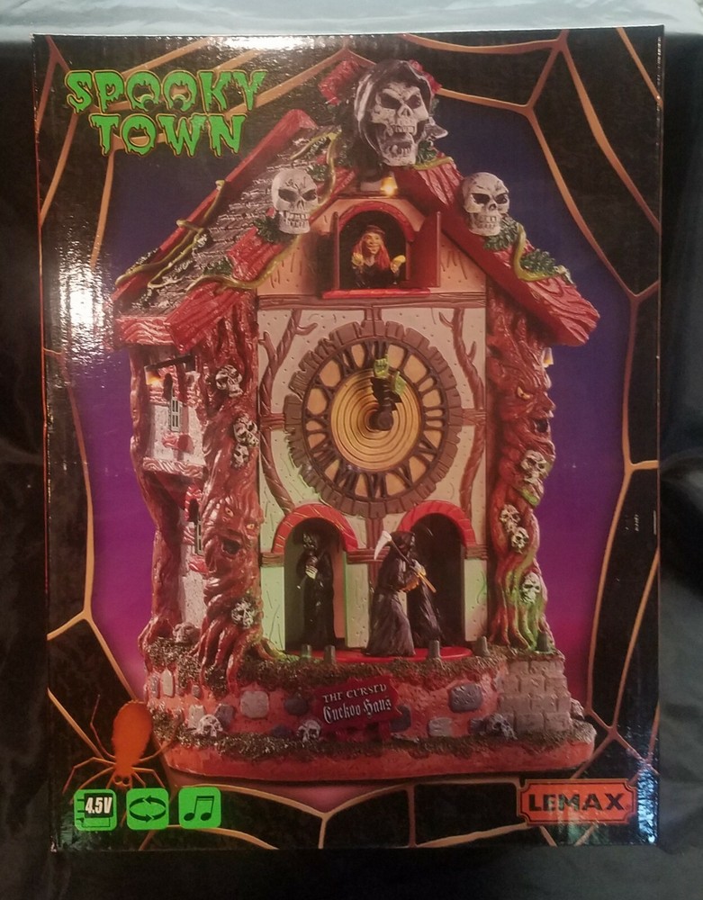 Spooky Town Lemax Signature THE CURSED CUCKOO HAUS Clock Halloween.I removed it from the package. The clock hand moves counterclockwise continues To move. It doesn't keep active time it is always in motion. When it hits the hour & 1/2 hour the witch door opens when it closes the grim reapers move around until it hits the quarter hour. They stop moving until the witch door opens again . Sold as is no returns. Message me with any questions. Thanks This was only opened for inspection and pictures.