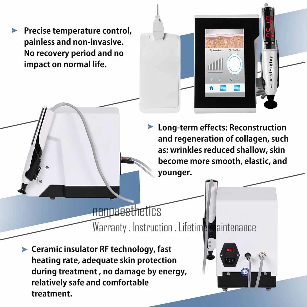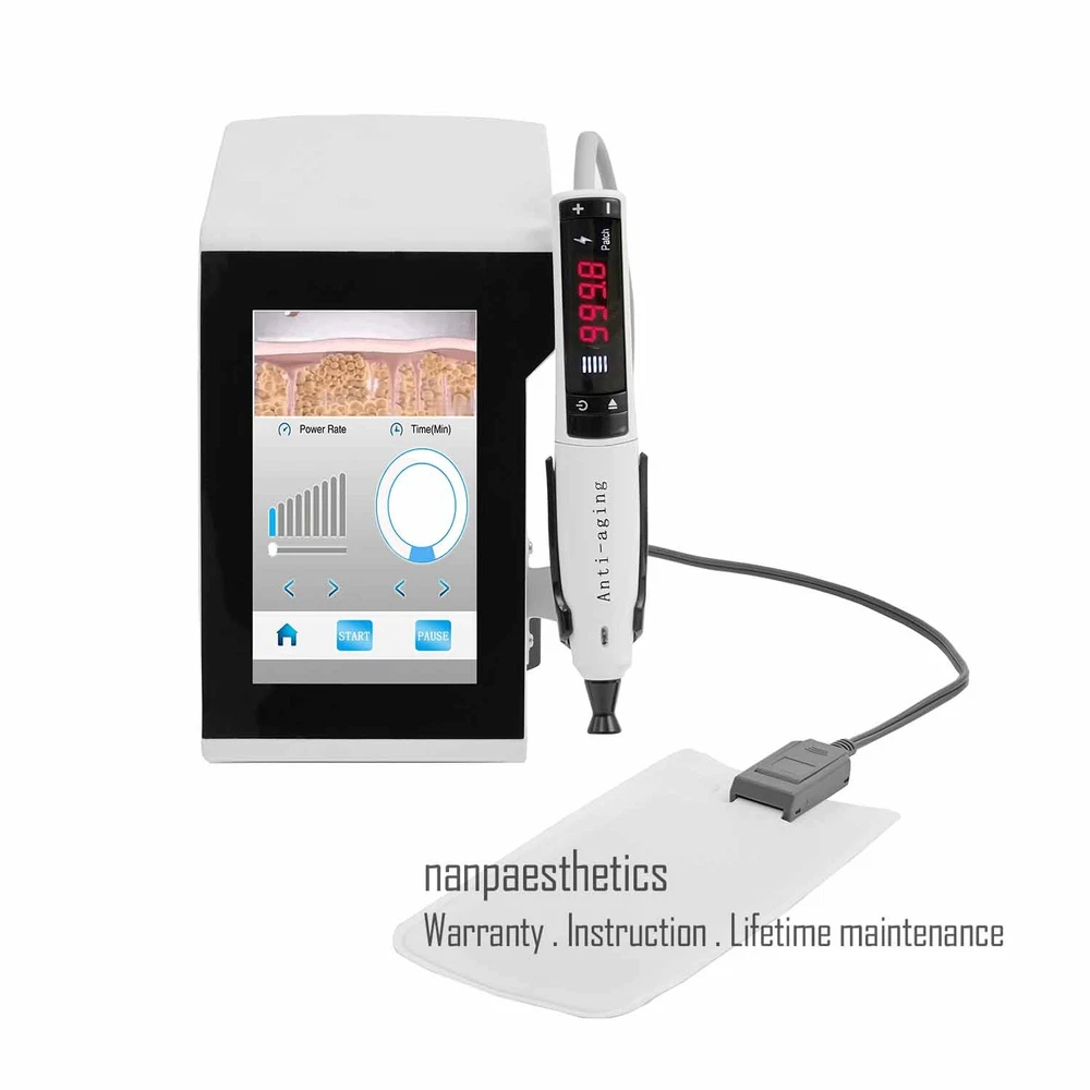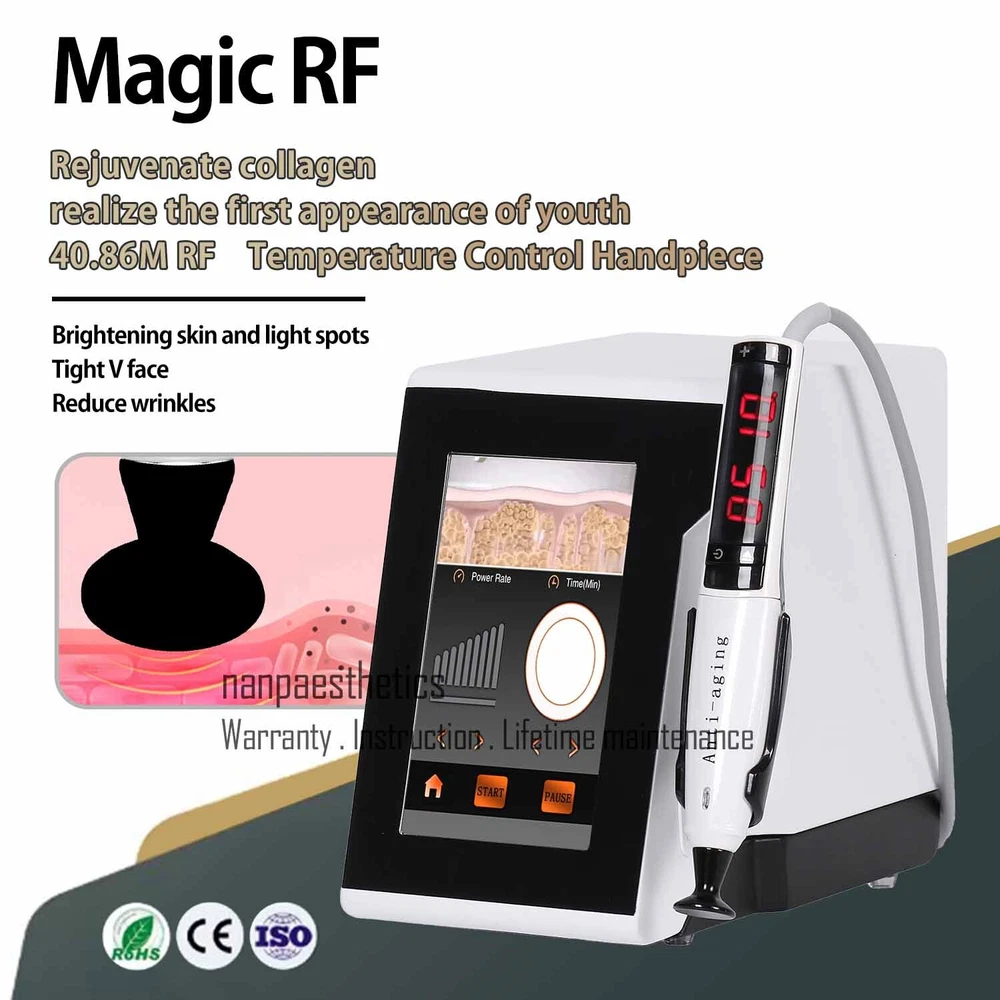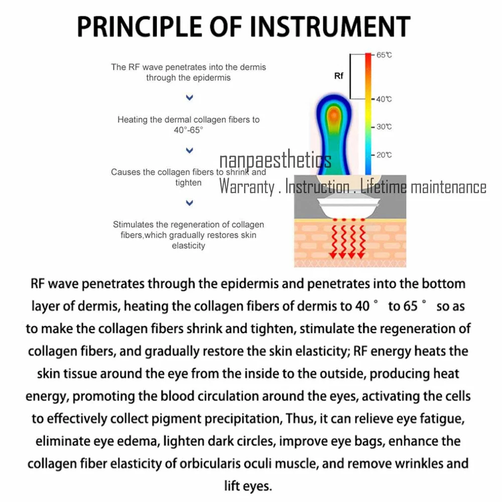 One year warranty . Lifetime maintenance . Professional model Professional 40.86 Mhz RF radio frequency eye face massager adopts the lastest monopolar RF technology to renew skin that defies sagging and aging. After the treatment, the skins metabolism and blood circulation will be accelerated to form new collagen. It will enhance the skins elasticity plus improve the skin tone with anti-ageing benefits to improve total skin condition. Low level light therapy is a perfectly good non-invasive program for skin rejuvenating ,acne treatment, and various skin conditions. Advantage of this system: 1.Precise temperature control, painless and non-invasive. 2.No recovery period and no impact on normal life. 3.Immediate results with long-lasting effect. 4.Long-term effects: Reconstruction and regeneration of collagen, such as: wrinkles reduced shallow, skin become more smooth, elastic, and younger. 5.Ceramic insulator RF technology, fast heating rate, adequate skin protection during treatment, no damage by energy, relatively safe and comfortable treatment. Item Specifications: - Power: 10-100 W - High powered total 273 Leds - Output Frequency: 10 M - RF Frequency: 40.86 M - 1 handpiece & 1 face/body area tip - Touch screen control, Handle fast setting - Easy to use , Effective BENEFITS OF LED PDT TREATMENT Face lift, skin lifting Removal wrinkles Promotes skin rejuvenation by stimulating collagen and elastin Encourages lasting hydration in the skin Antiaging, skin refresh,acne treatment Subsides active acne clearing and brightening the skin Pain free, non-invasive , no side-effects, no down time The treatment time is just under 15-30 minutes. Treat eye Bags, Dark Circles, Eye Fatigue,Puffy Eyes and Crow's feet