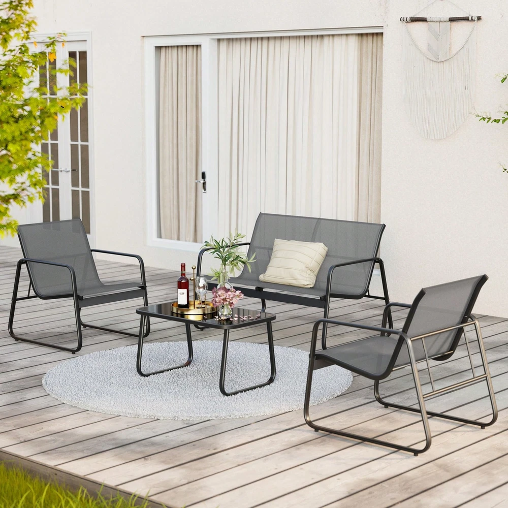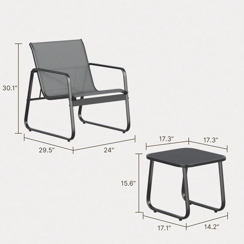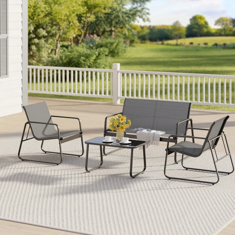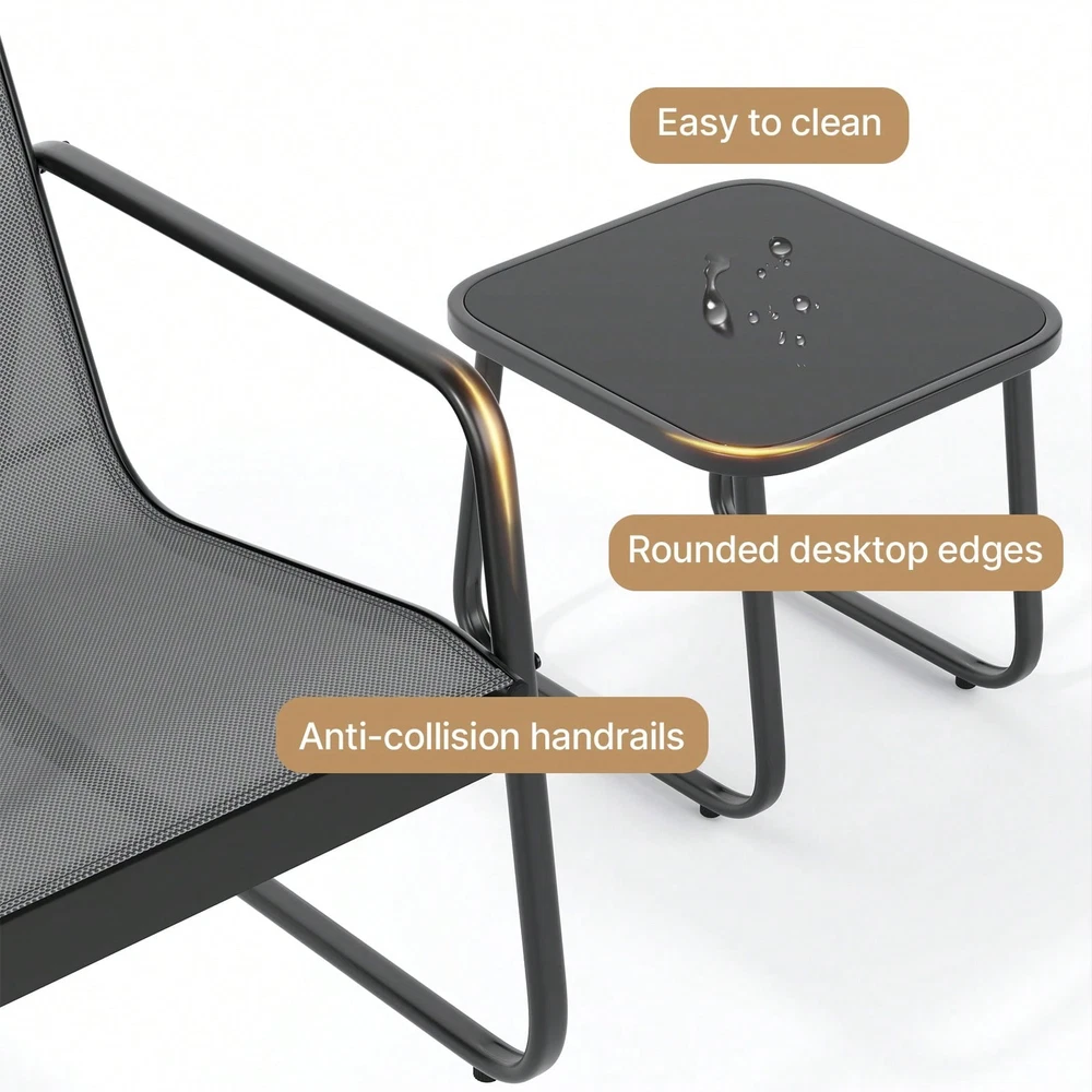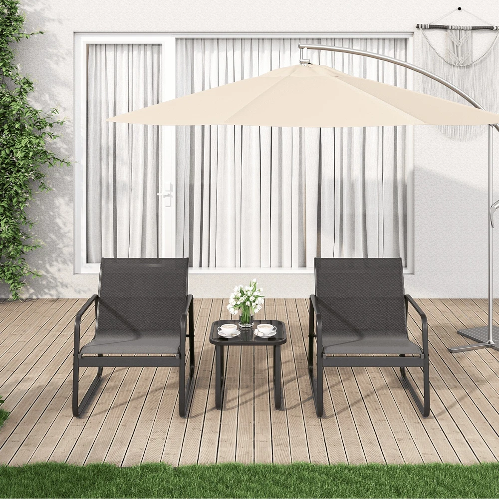 This patio set is a fantastic addition to any outdoor space! The sleek design and comfortable sofa chairs make relaxing outside a breeze. The glass table adds a modern touch, and the sturdy construction holds up well in my garden. Perfect for small gatherings or just lounging by the pool—great value for the price!