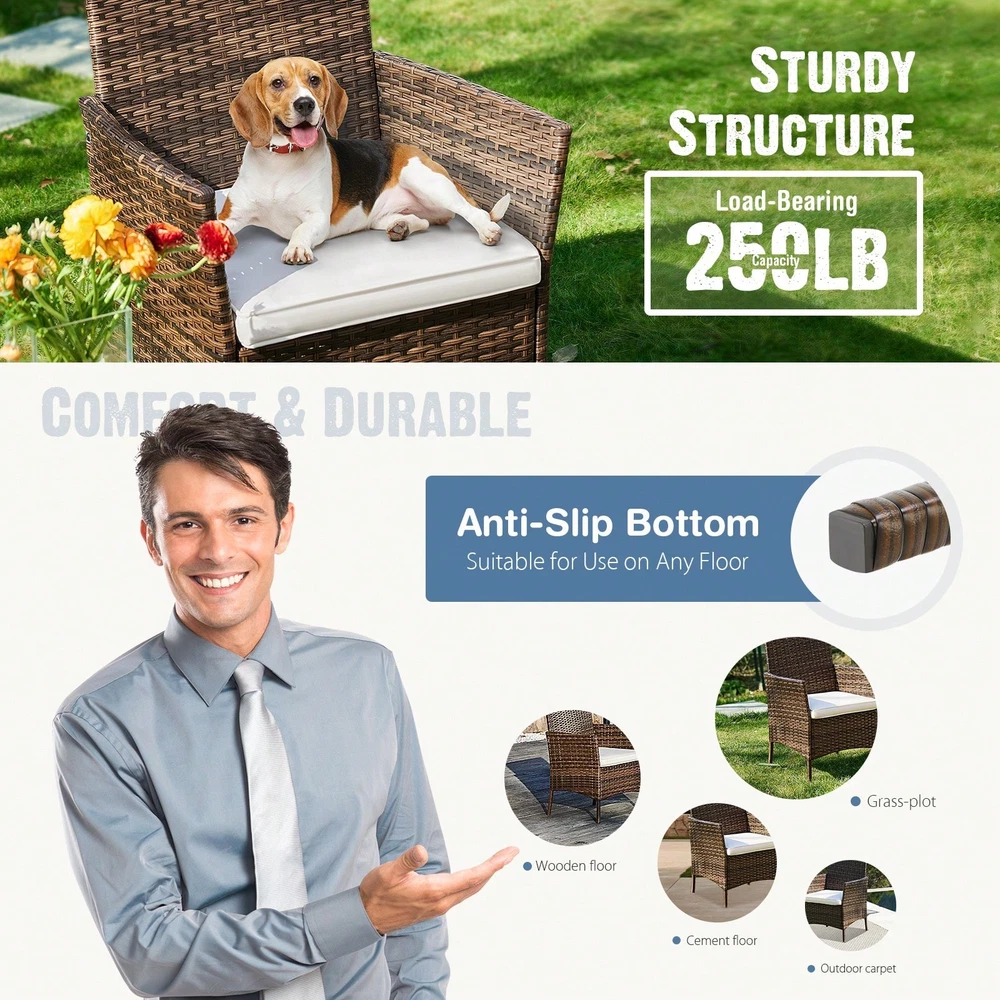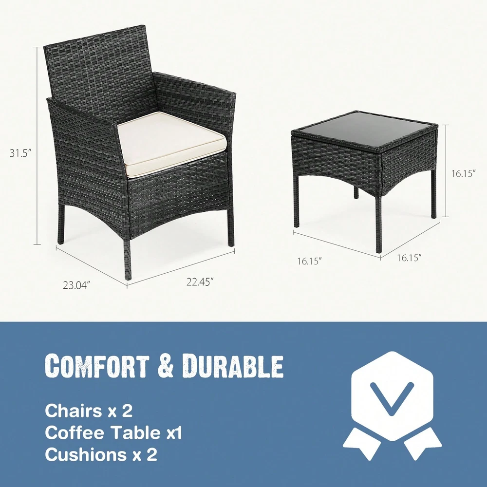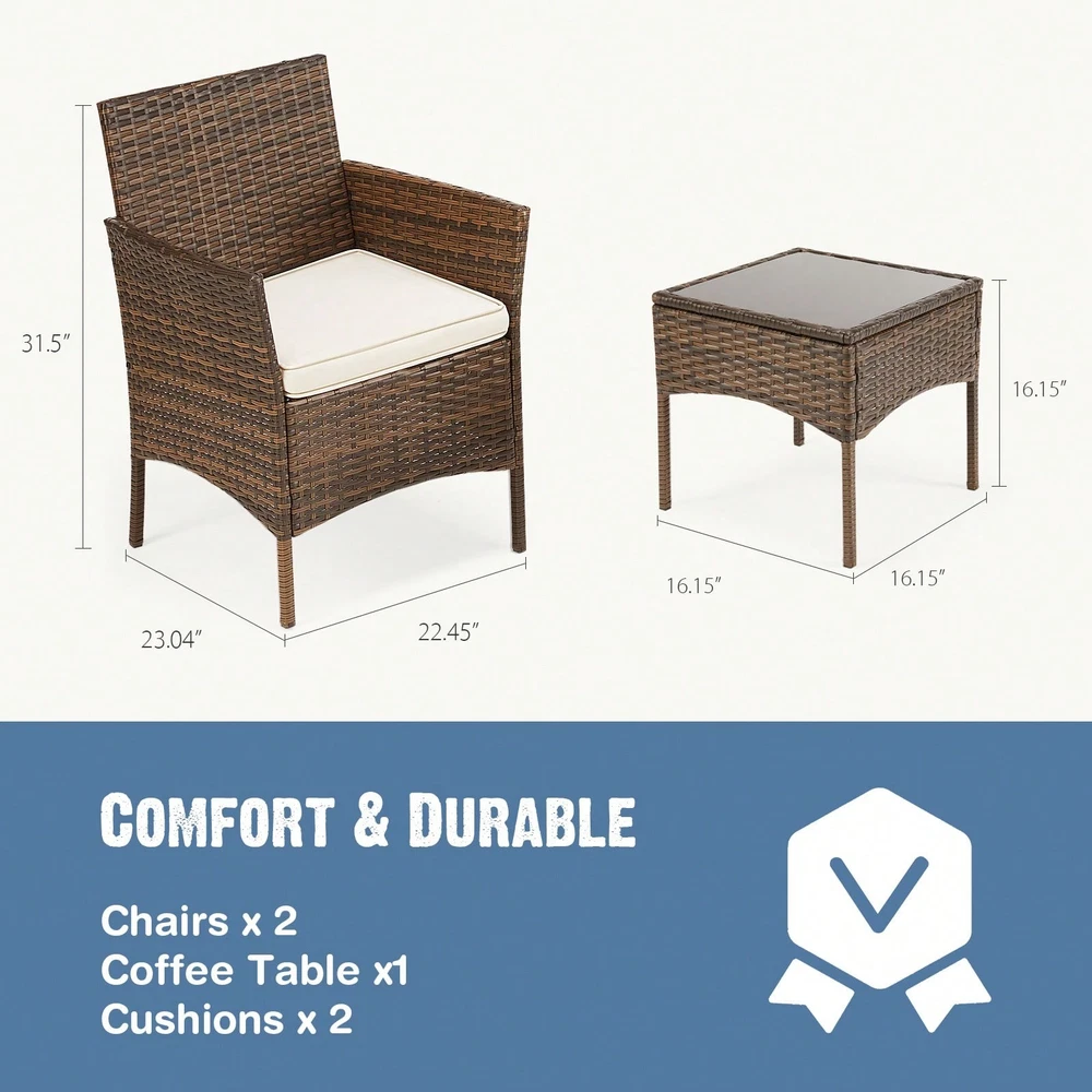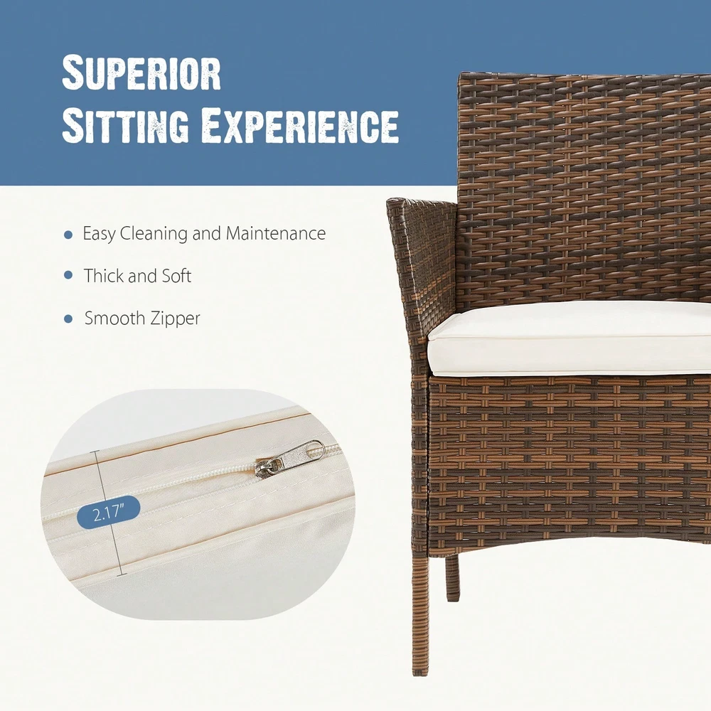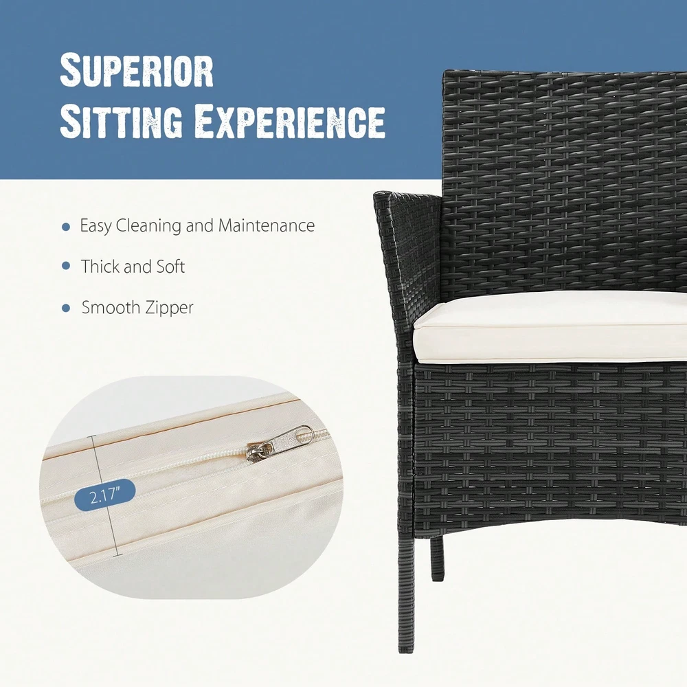 Absolutely love this patio set! The wicker design is stylish and durable, perfect for relaxing outdoors. The sofa is comfy, and the coffee table is a great addition. Easy to assemble and looks fantastic on my terrace—great value for money!