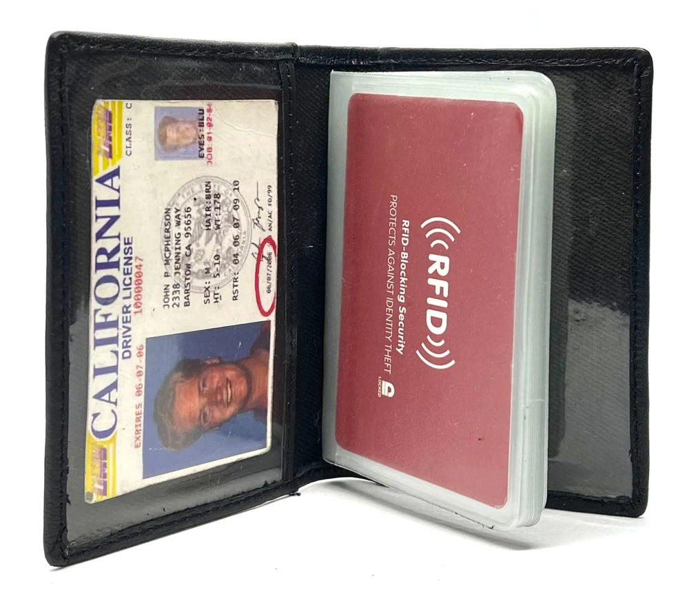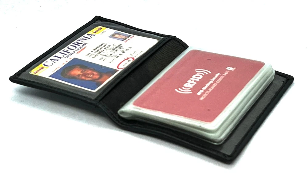 Features: Condition: New Material: 100% Genuine Leather Dims: around 4.25" x 3" Picture ID Insert *it may holds more then 10 thin cards (front and back) NOTE: 1"=2.54 CM This item will be ship from the USA