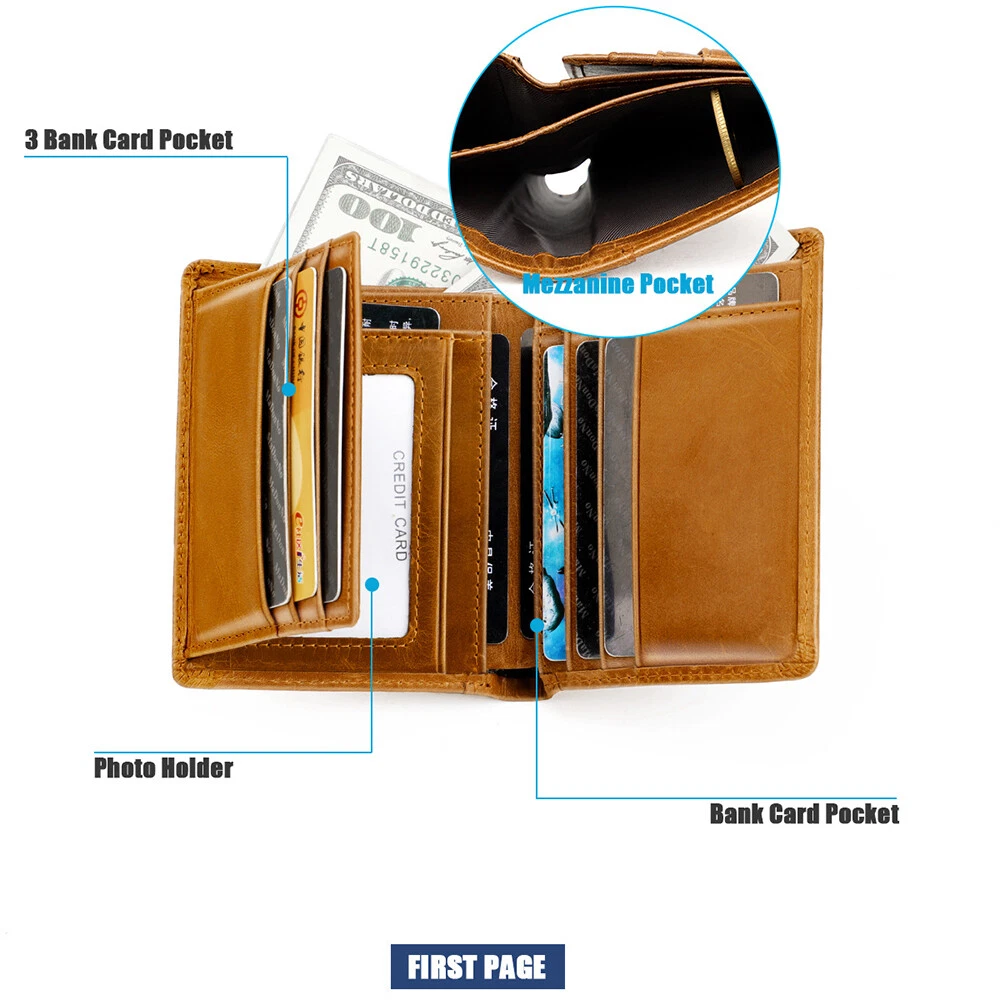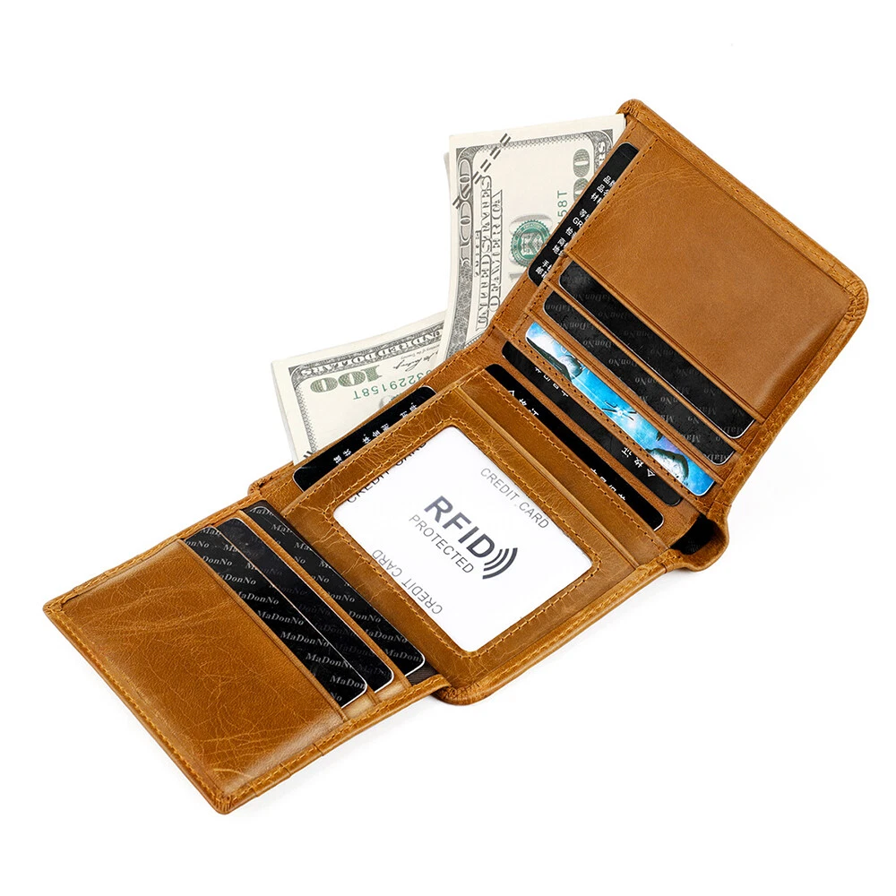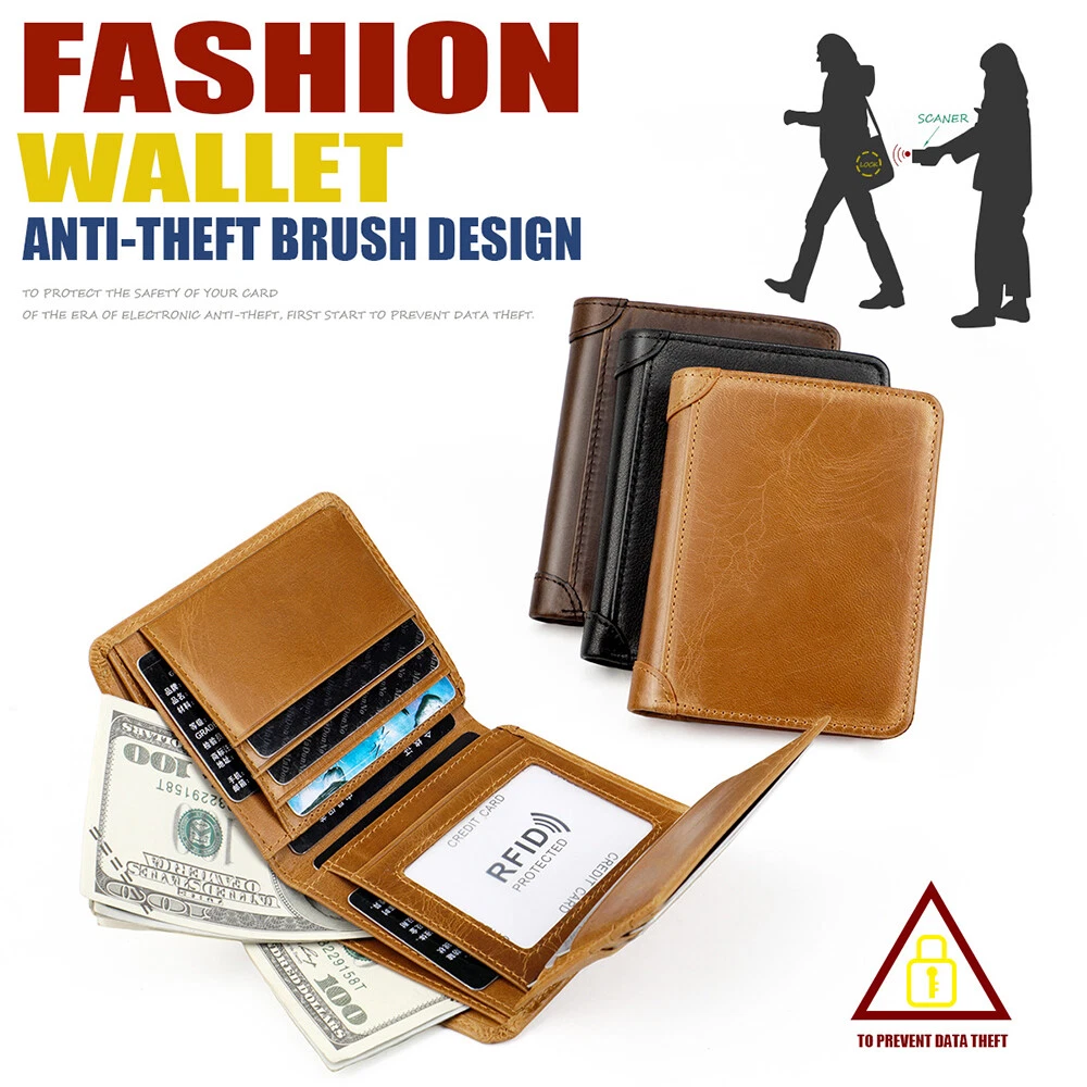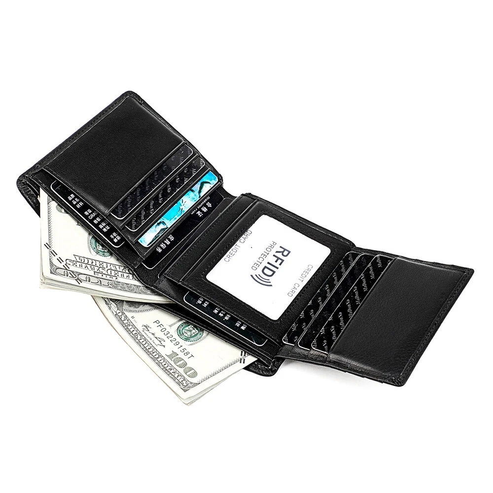 RFID Blocking Wallet Man's Leather Foldable Purse ID Card Holder Pocket Purse