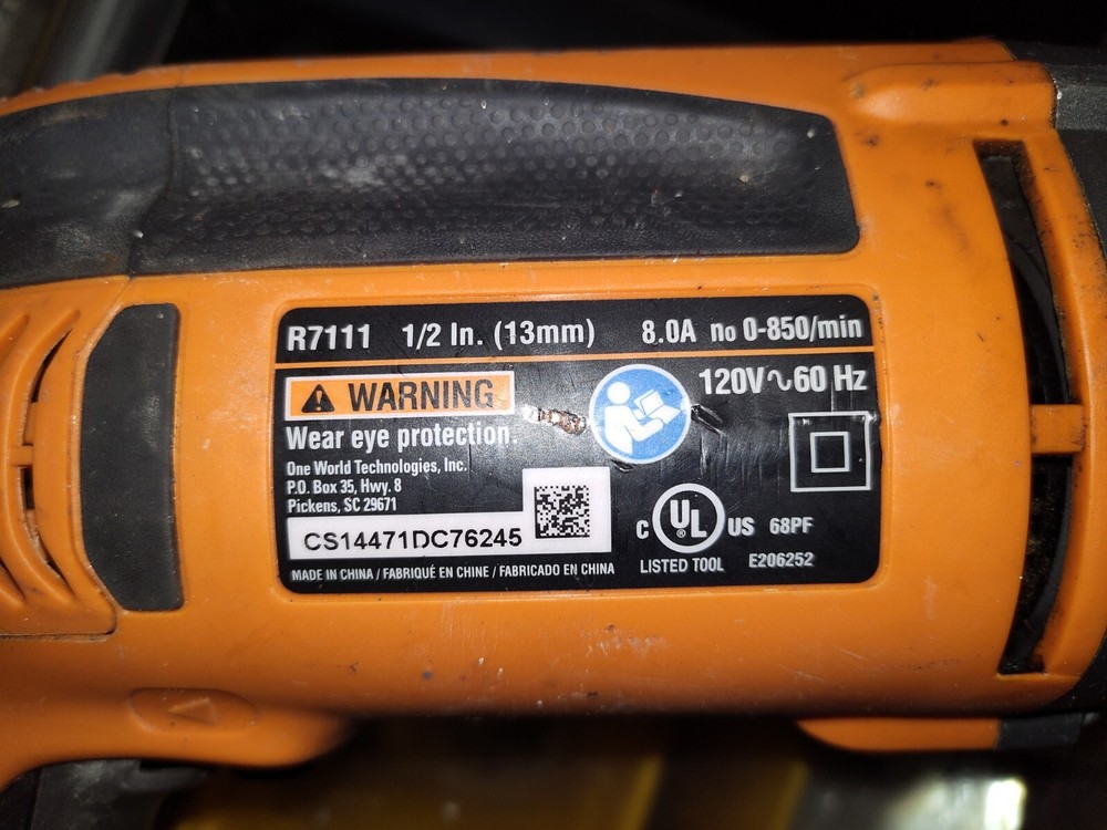 The RIDGID 1/2" Electric Drill R7111 comes with a case, instructions, handle, and chuck key. It has a chuck size of 1 1/2 inches and operates on 120 volts of corded electric power. The drill features a keyed chuck type and does not include a battery. Overall, it is a quality electric drill that comes complete with essential accessories for convenient use.