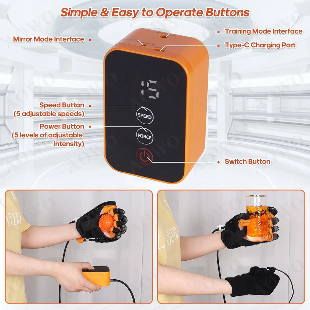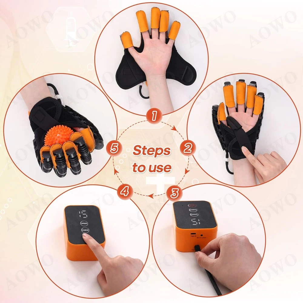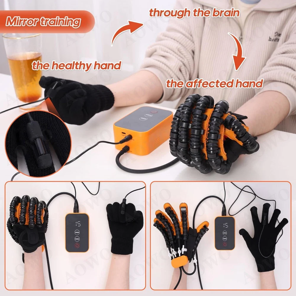 Click to play videođđ Feature: ăPortable hand trainer, rejecting ineffective trainingă Stiff hands, training to promote blood circulation and flexibility. Compact size, easy to carry and does not take up much space. Intelligent chip, stable and long-lasting work ăEasy to operate, easy for the elderly to masteră Mirror training, mirror glove for improved efficiency. Adjustable air valve for finger training. Portable belt, easy to carry ăIndependent valve switchă Train any finger to flex and extend freely with the independent switch. Turn the valve knob 90° horizontally to close the valve and open it vertically. Mirror mode for brain function remodelling. Mirror glove with synchronised movements. ăStretching movements, with hands open, train your hands. Opening movements can be executed in sync.ă Bending position grasps, tightly mimics your hand and trains your hand. Can perform fist movements in sync. Easy to operate, one button start, you can start training with five fingers, single fingers, opposite fingers, multiple fingers, mirror image, etc. Portable belt for your on-the-go needs ăUSB for easy charging and uninterrupted power supplyă Powerful power,five-speed frequency control,powerful air pump to ensure continuous output and stable operation with sufficient power ăFine stitching,joint opening,easy finger bendingă Flexible pneumatic tube, upgraded toughness, flexible and more comfortable. Velcro straps, super elastic, adjusts and fits both hands Mirror gloves, mirror training, easy to use. Individual pneumatic valves, each finger can be targeted for training Effect : Rehabilitation Robot Glove has a significant effect on hand dysfunction caused by the following symptoms: 1. stroke/cerebral hemorrhage/cerebral infarction 2. incomplete spinal cord injury 3. brain injury,hemiplegia 4. multiple sclerosis Package include: 1 x Hand Mirror Training Rehabilitation Robot Gloves (Left or right: your choice) How to use: 1. Glove interface connected to the host. 2. Fingers in turn wear to the end. 3. Fix the Velcro. 4. Fix the number of straps as needed. 5. Turn on the machine can be used. FA&Q: How long is it appropriate to use each time? The single use time should not be too long, it is recommended to control within 20 minutes. How to set the training intensity? Different users have different muscle physiological conditions and different levels of rehab and exercise, so different muscle tone levels correspond to different recommended levels, see the manual for details. What is the target group? Stroke patients, cerebral hemorrhage patients, children with hand burns, cerebral palsy-induced hand disorders, young and middle-aged people and the elderly. What are the contraindications to the use of the hand function rehabilitation training device? Before training, please confirm that the hand to be trained is not stiff, if it is stiff, please massage and warm the hand first, and wait for the hand to reach a soft state before training; please do not give it to people without behavioral awareness or young children to use it alone; such as hand sprains, traumas, bone injuries of unknown condition, people with severe osteoporosis, people with untreated fractures or those who need to brake after treatment Do not use this product without professional confirmation of availability. On Jan 6, 2025 at 19:13:29 PST, seller added the following information: