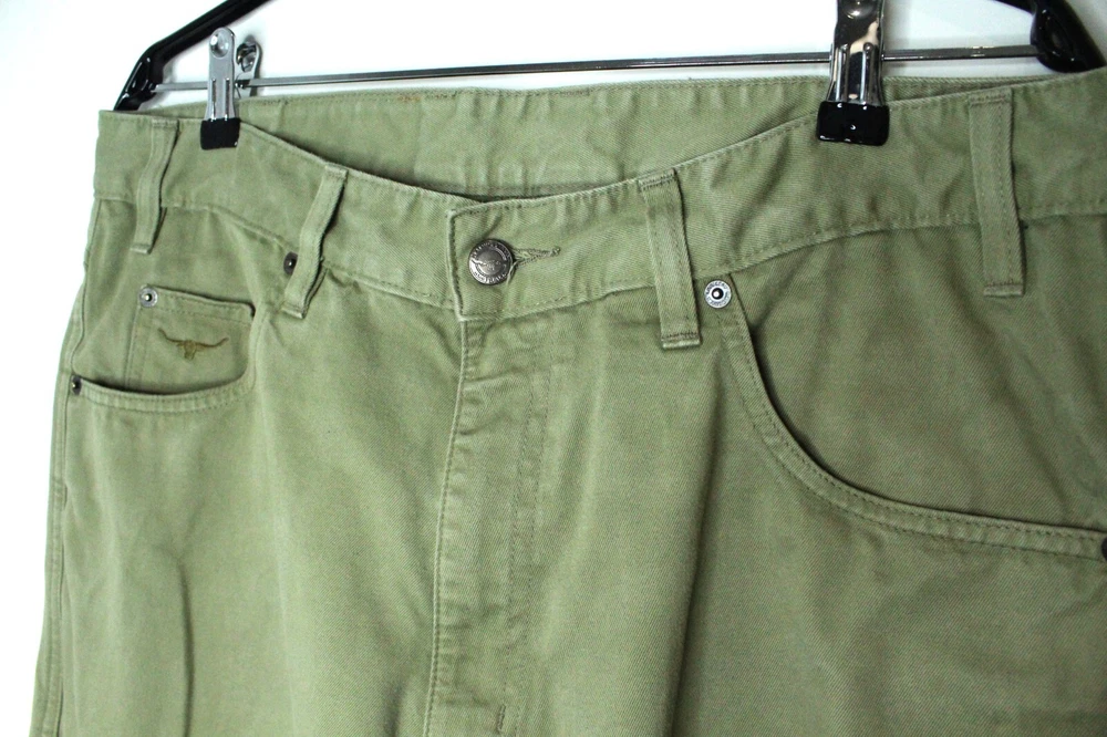 Perfect condition pants! Made in Fiji, R.M. Williams chino pants for men. Core TJ 881.62 olive green color. Measurements flat: Waist 46 cm / 18 in Total length 112 cm / 43.5 in Inseam 80 cm / 32 in Rise 30 cm / 12 in Width of Bottom 23 cm / 9 in SHIPPING TO USA USUALLY TAKES 10 WORKING DAYS!