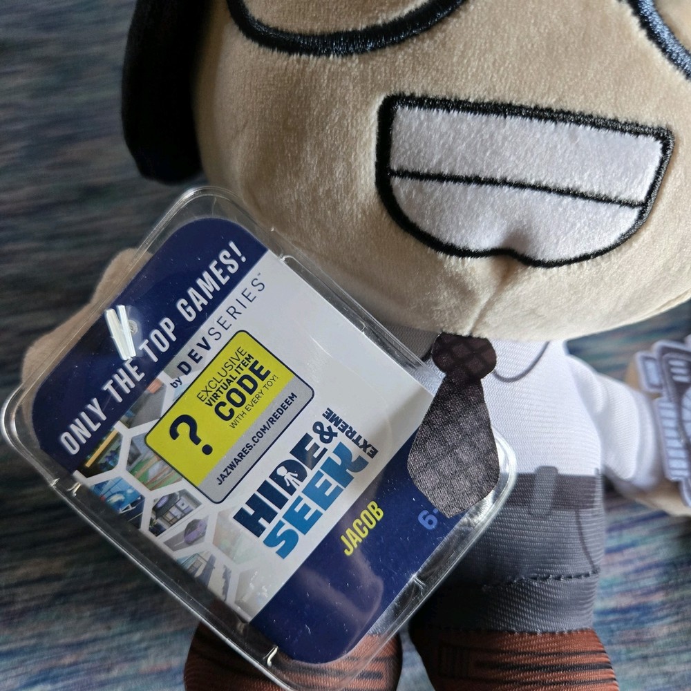 UPC: 191726508472 gtin13: 191726508472 Manufacturer Warranty: N/A Video Game Name: Roblox Product Line: Hide & Seek Extreme Features: Download code Type: Plush Doll Year Manufactured: 2022 Video Game Series: Roblox Character: Jacob Model: Hide & Seek Extreme Jacob Country/Region of Manufacture: China Brand: Jazwares MPN: CRS0017