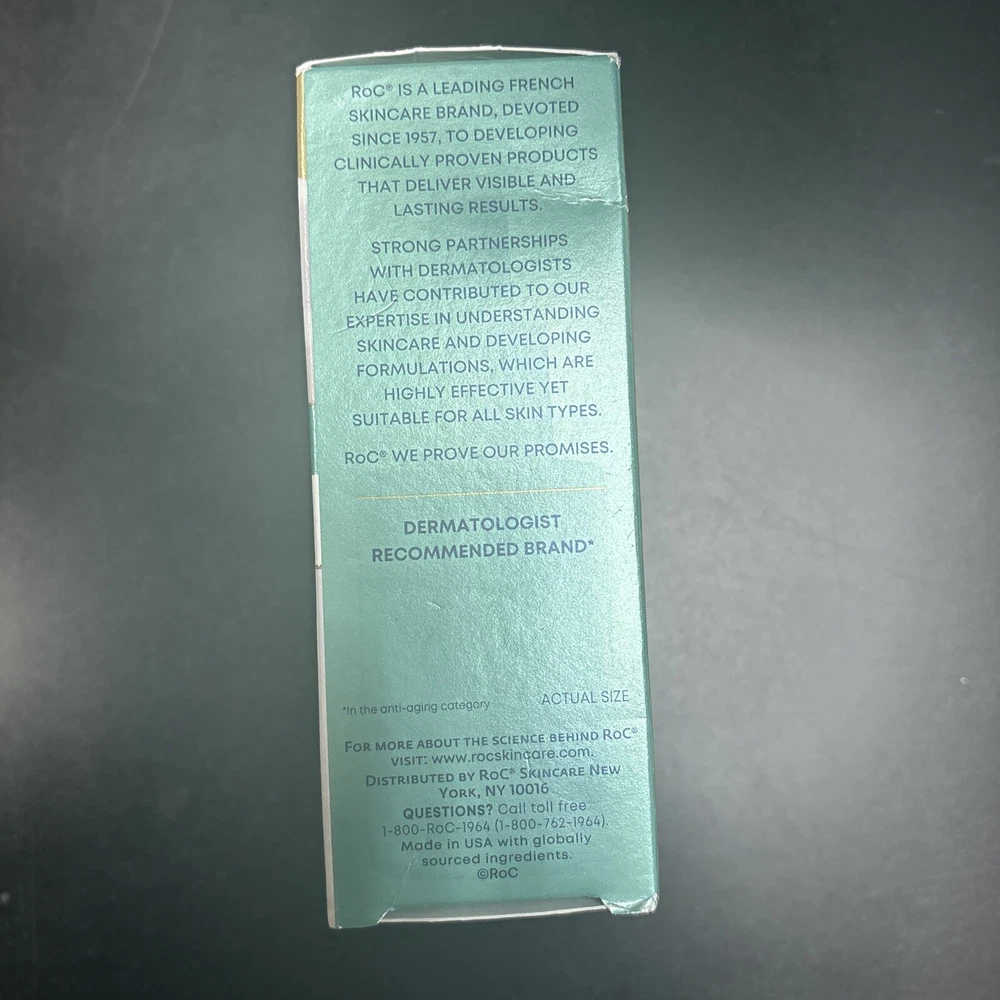 Volume: 1 fl oz Body Area: Face, Neck UPC: 840103214283 Brand: RoC Formulation: Serum Type: Skincare Skin Type: Dry Skin Active Ingredients: Hyaluronic Acid Main Purpose: Hydration Period After Opening (PAO): 12M gtin13: 840103214283