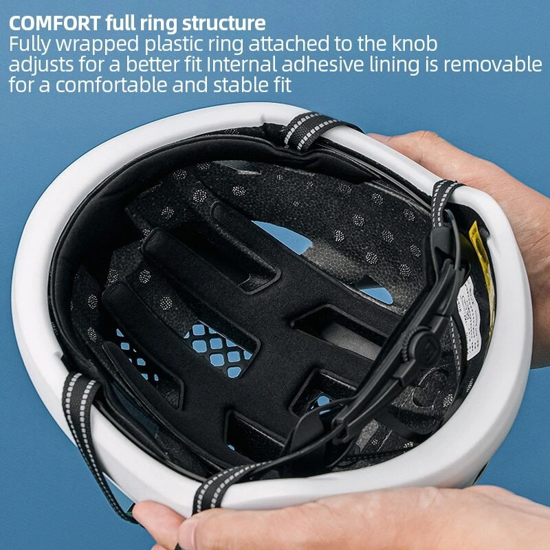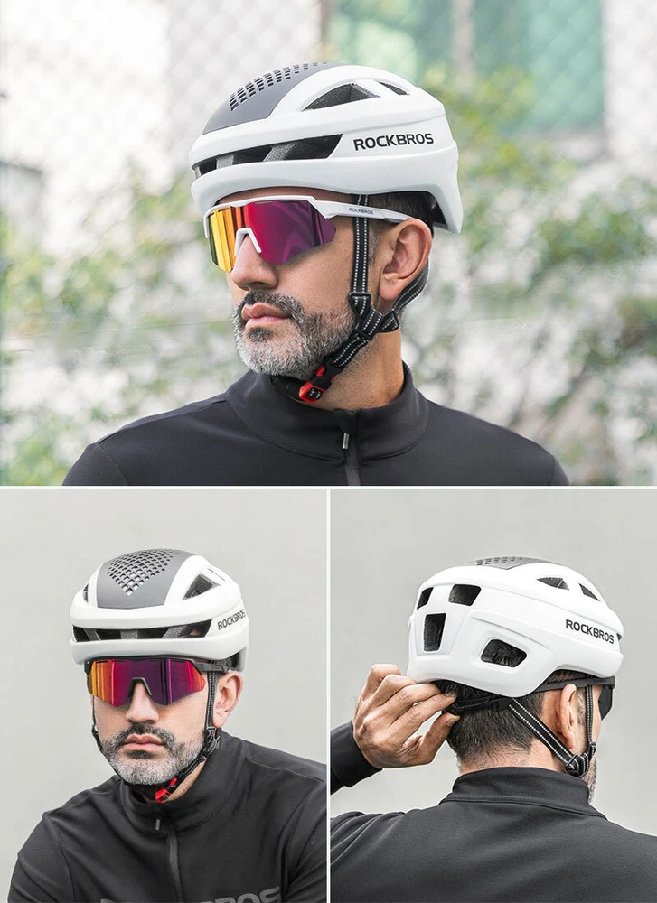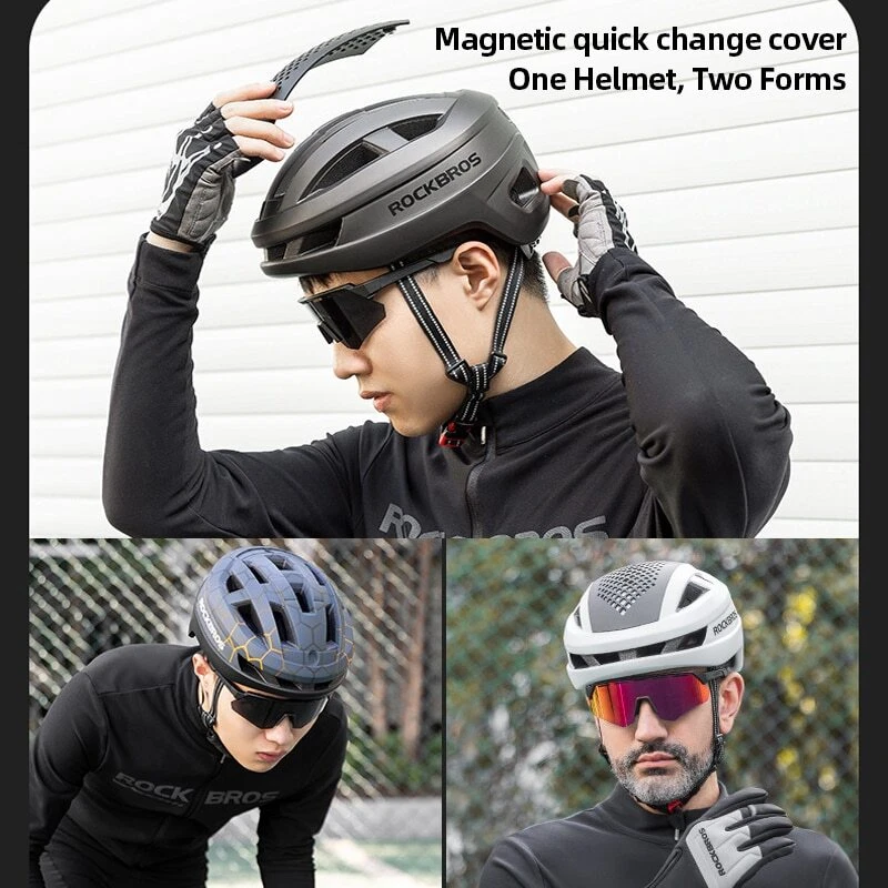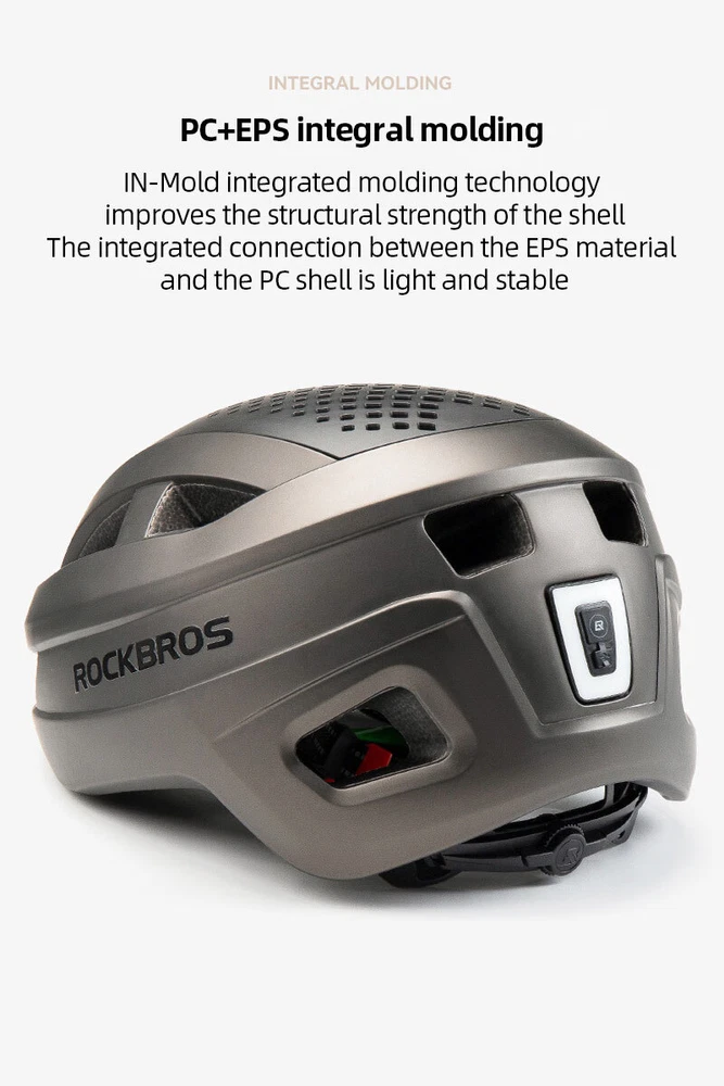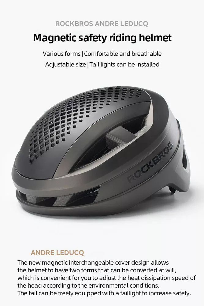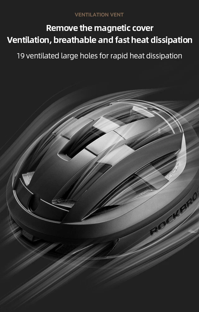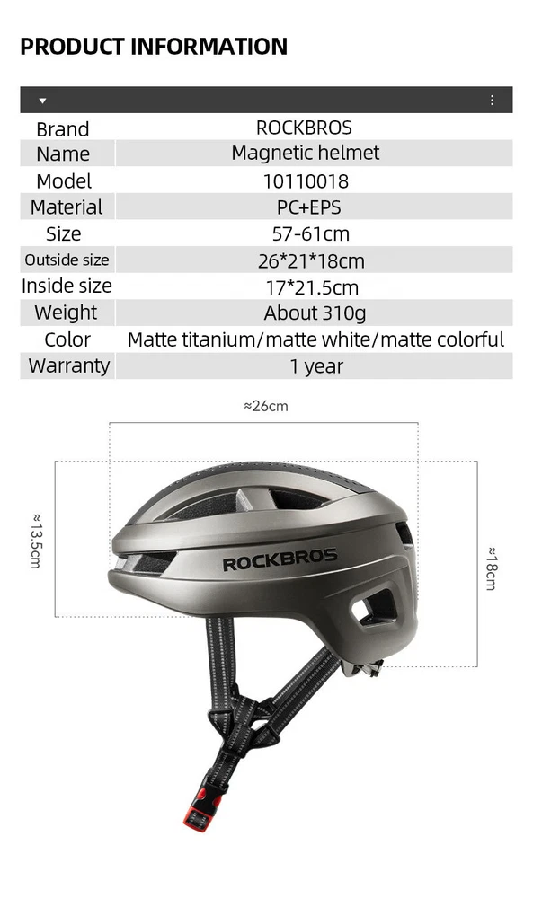 Brand Name: ROCKBROS Model No.: 10110018 Material: PC+EPS Vents: 19 Weight : about 310g Size : L (57-61cm) Color: Matte titanium/matte white/matte colorful Age Group: (Adults) Men and Women Application: Road Bicycle/ MTB bike Construction: In-mold Polycarbonate Shell Feature: Magnetic cover/taillight/breathable/ultralight