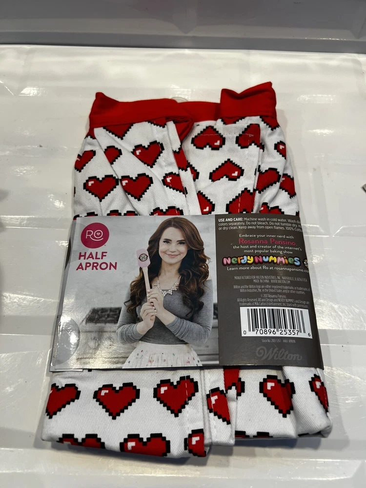 Number in Pack:1Pattern:HeartsOccasion:All OccasionsType:half apronCustom Bundle:NoBrand:WiltonMaterial:CottonColor:White/RedCharacter Family:N/AManufacturer Color:red/whiteUPC:070896253576gtin13:070896253576Number of Items:3MPN:2103-5357