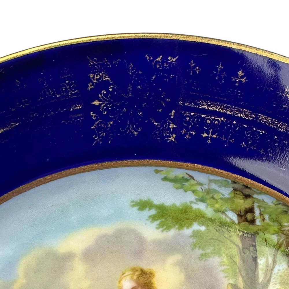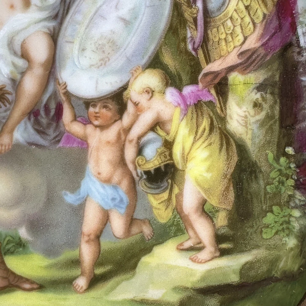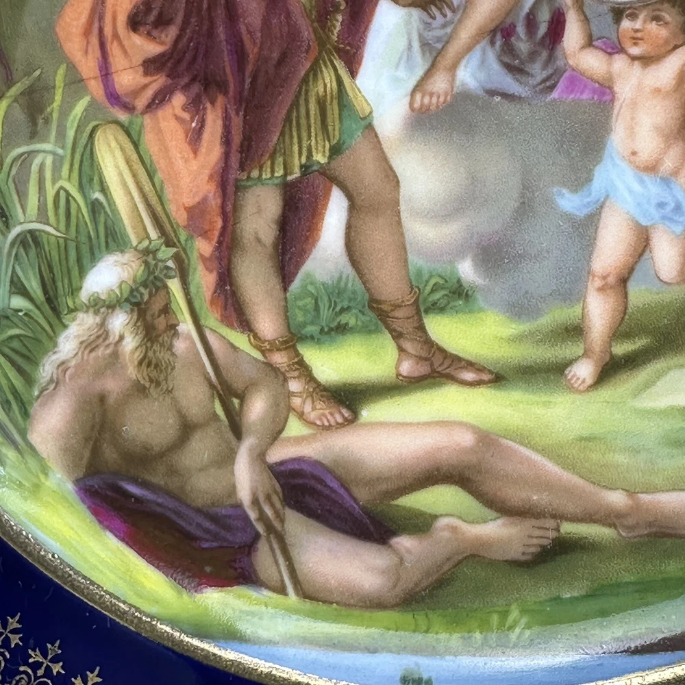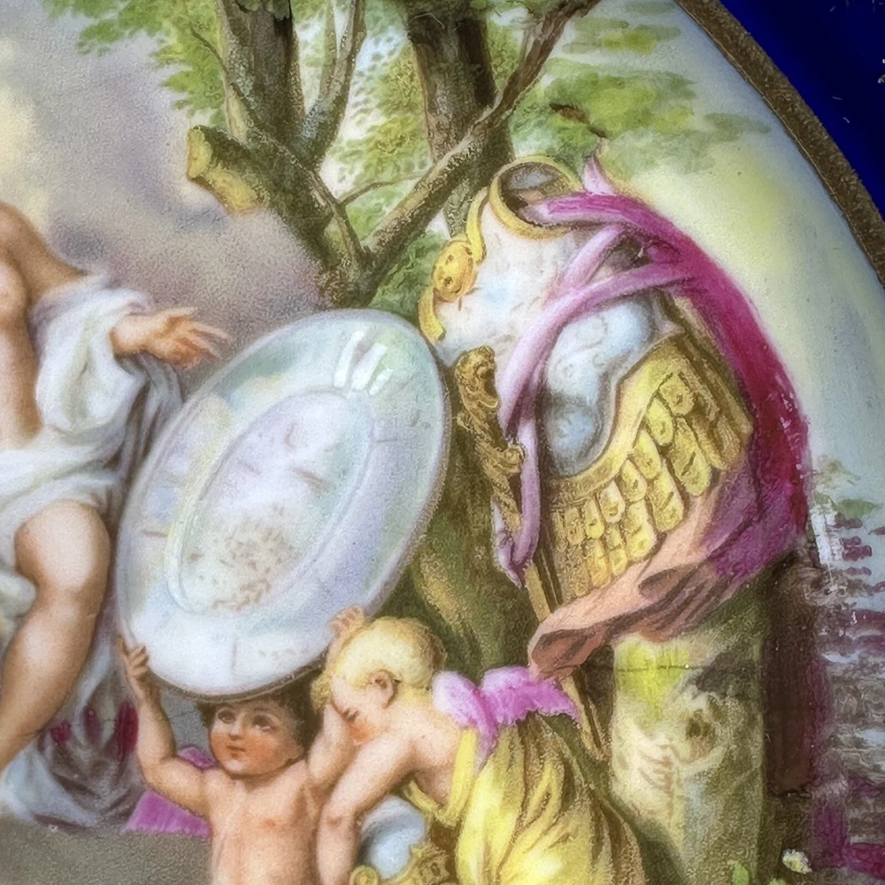 This is an antique Royal Vienna collector plate depicting "Venus & Achilles" on a round 8.5-inch porcelain plate. The design features multicolor detailing with blue and gold accents, showcasing a Victorian era theme of gods. We closely inspected for any flaws or issues. This piece is in excellent condition. No chips or cracks. There is some wearing off of the gold paint . Please look closely at our high resolution photos, and we encourage you to ask any questions you might have. It is our goal that all customers are extremely happy with their purchase :-) We package all items very carefully using bubble wrap and double boxing when necessary. You can trust in our 25 years of shipping delicate and fragile items. We purchase the vast majority of the items we sell from a local not-for-profit women’s shelter, where we also volunteer. These high-quality items are graciously donated by affluent residents to support the work of the shelter. You are also supporting the shelter by purchasing with us. Thank you for your patronage :-)
