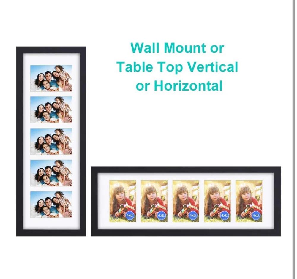 HomeRPJC Solid Wood Collage Picture frames 5 Opening 4x6 Photos with Mat or 8x24 New