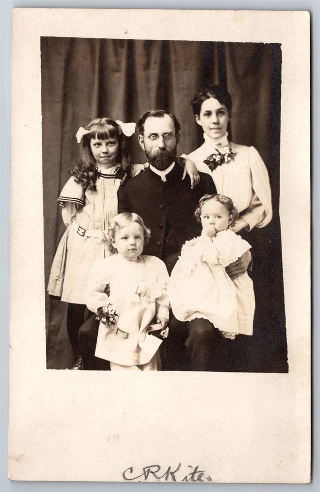 RPPC Family Photo 3 Little Girls CR Kite C1910s Real Photo Postcard AB18