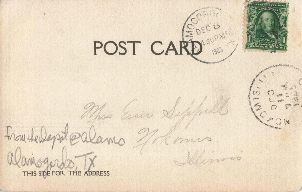 Antique or Vintage Photo Postcard item: RPPC, Real Photo postcard. See below, for a complete description. ...RPPC UNUSUAL Alamogordo NM RARE NEW MEXICO View FROM THE El Paso & Northeastern Railroad DEPOT founded1898, as the El Paso & Northeastern Railroad, headed by Charles Eddy, extended the railway to the town... Location or Photographer known and listed or unknown. All items are original, authentic RPPC's ... Original, not reproduction. Shipped very well package, USPS 1st Class postage, or Priority Mail with tracking! Quantity shipping discount refunds sent along with all shipment (dollar bills) where they apply! Please Note: We provide high-resolution scans and cropped views for your review. Don't hesitate to get in touch with us with any questions. We do not knowingly sell reproductions, so you can be assured these are historically significant, antique, or vintage items! Shipping Discount for multiple card "Winners"! O rder tracking...We post "Buyer Feedback" at the time of shipping! Check out our UpNorth Memories Store to see more great collectible items! Link: https://www.ebay.com/str/upnorthmemoriescollection UpNorth Memories Postcards, Historic Photographs and Paper Collectibles! Don Harrison...The UpNorth Memories Guy! Traverse City, Michigan. #upnorthmemories Mobile Format Modified: updated 8-13-2022 #upnorthmemoriescollection Powered by SixBit's eCommerce Solution