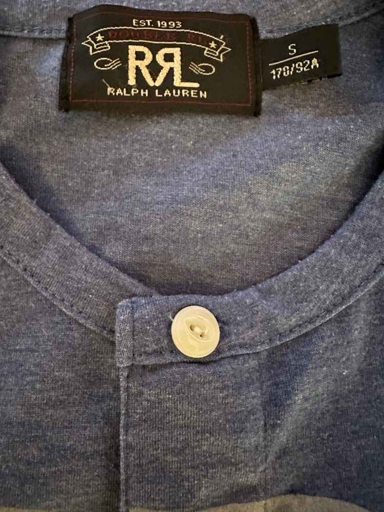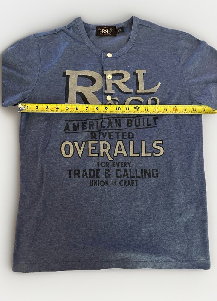 The RRL Printed Henley T-Shirt in size small is a stylish and versatile addition to any man's wardrobe. Made from 100% cotton in a classic blue color, this short sleeve shirt features a Henley neckline for a modern touch. Bought new and only worn a few times. Machine washable for easy care, this shirt can be worn in any season and is perfect for casual or dressed-up occasions. The RRL brand ensures high quality and a timeless look that will never go out of style. All buttons and tags intact! See pictures for all details and measurements. Please ask questions before purchase! See my other items for sale! Lots of RRL