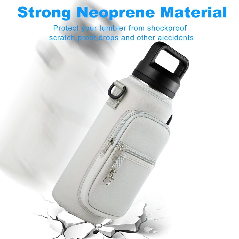 đăDurable Constructionă: Made from high-quality, water-resistant fabric, the holder ensures that your bottles are well-protected from scratches and exposure to moisture. This resilient material withstands daily use, outdoor adventures, and potential weather conditions, preserving the integrity of both the holder and the bottles inside. đăUniversal Compatibilityă: With dimensions of 4" x 5" x 12", this water bottle carrier comfortably accommodates a wide variety of bottles, including vacuum bottles, sports bottles, and feeding bottles from different brands. It is specifically designed to fit bottles ranging in size from 32oz to 40oz, ensuring compatibility with many popular models on the market. đăTemperature Regulationă: The insulated interior efficiently maintains the ideal temperature of your beverages, whether hot or cold. This feature allows you to enjoy perfectly tempered drinks throughout the day, regardless of external conditions, thanks to effective heat retention properties. đăOrganized compartmentsă: In addition to the primary bottle compartment, the carrier boasts multiple pockets for convenient storage of your essentials.Two zippered compartments, complete with a key leash, provide secure storage for your smartphone, keys, and other small valuables. đăVersatile Usageă: This water bottle carrier is suitable for adults engaging in various activities, such as work, walking, hiking, camping, beach trips, and other outdoor pursuits. Its adaptable design, combined with its durability and functionality, makes it a practical choice for individuals with active lifestyles or those who value convenience on the go.