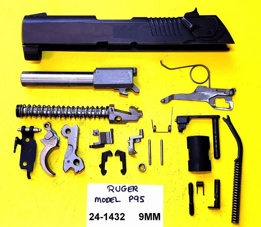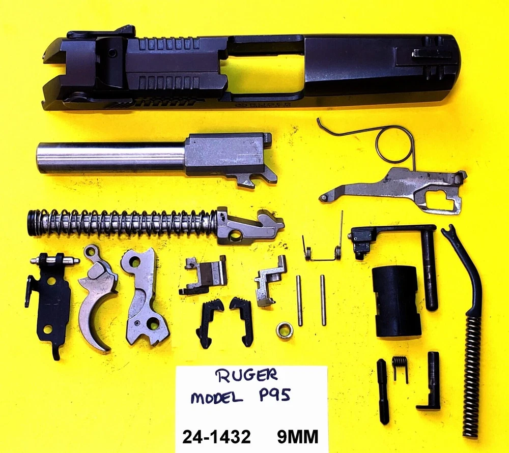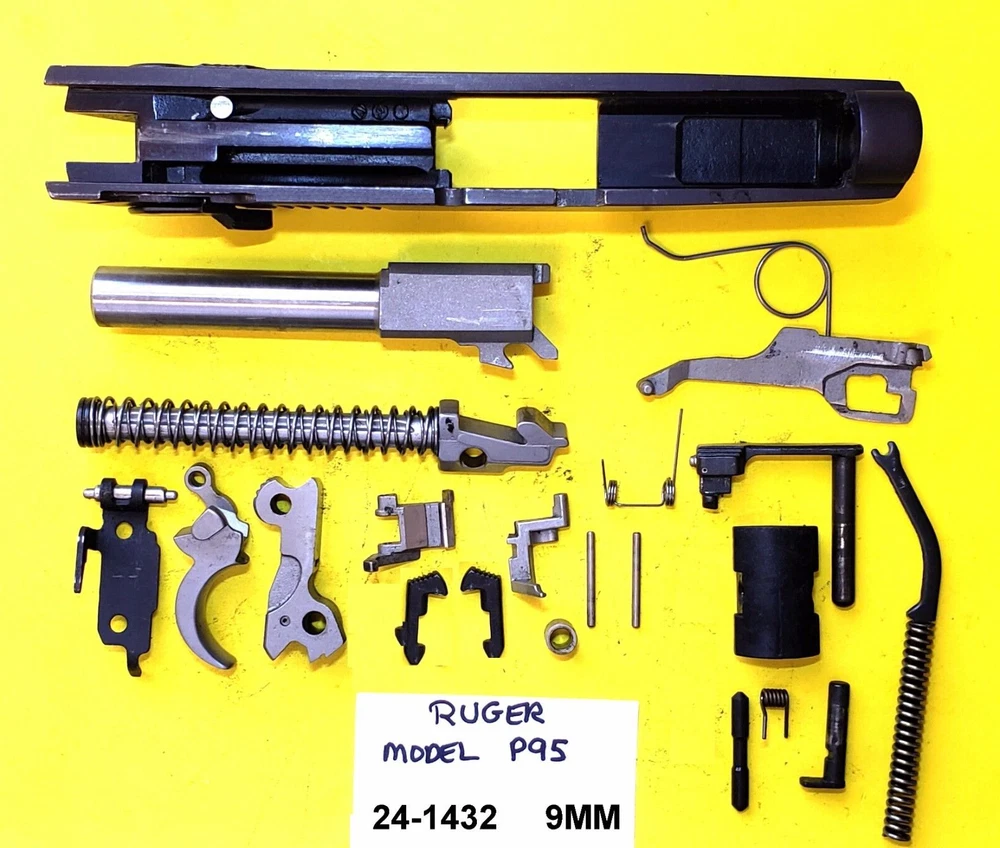RUGER P 95 BLUED STEEL IN 9 MM CALIBER SLIDE, BARREL, TRIGGER, These parts were made for and Compatible with the RUGER P 95 ::INCLUDES Complete Slide, Barrel, Hammer, Trigger, Recoil Spring ,Firing Pin, Slide Stop, Recoil Rod, Take Down Lever, Main Spring And Guide, Safety, Safety Pins, Springs ITEM # 24-1432 USED Parts May show some blemishes, scratches & handling marks here and there. What you see in the picture is what will be shipped, no more, no less, so please check carefully to insure that the parts you need are included. Don’t miss a bargain on these hard to find parts! Some parts will require cleaning. These parts are used and will show signs of use. We start our listings at the lowest price we can. WE CANNOT PULL INDIVIDUAL PARTS FROM PARTS LOTS AS THEY ARE PRE PACKAGED AND READY TO SHIP. WE OFFER OUR PARTS AT THE LOWEST POSSIBLE PRICE. Will ship to U.S.A. addresses only. Alaska and Hawaii residents please email for shipping quote on long gun kits or shotgun/rifle barrels. No local pick up, No exceptions. Payment is expected within 3 days of the end of the SALE. RILS99 HAS A 100% CUSTOMER SATISFACTION POLICY! Please notify of us through eBay if you have any problems within three days of receipt of the item. We are here to make you a satisfied customer. Please remember – Communication is EVERYTHING because we will bend over backwards to help our valued customers. In no event shall RILS99, its officers, directors, employees and or other representatives be liable for any damages of any kind, including without limitation, direct, indirect, compensatory, special, consequential, punitive, and or incidental damages related to the products sold. All firearms parts should be inspected and installed by a competent gunsmith.