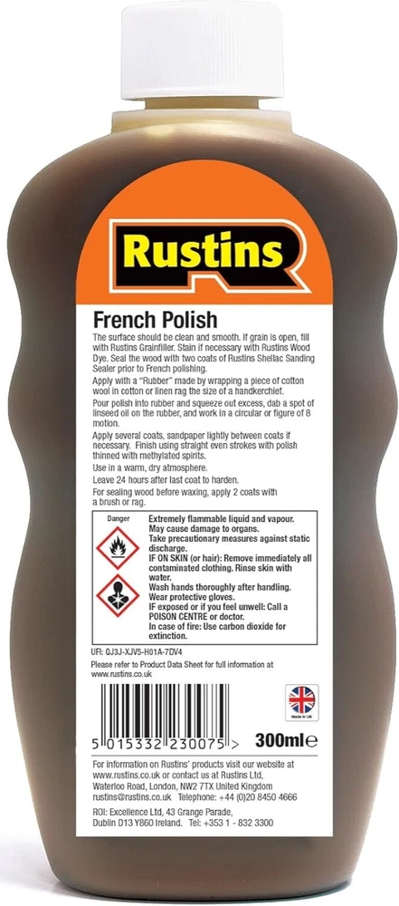 Powered by Frooition Helpful Links Add to Favourite Sellers Sign up to Newsletter View Feedback Contact Seller Visit seller's eBay Shop About Seller Page clearance DIY Tools Home Appliances Outdoor & Garden Kitchen & Homeware Toys & Games Sporting Goods Health & Beauty Baby & Toddler Electronics Musical Instruments Rustins French Polish Rustins French Polish Fast Delivery Secure Payments Ask a Question Follow SuperGift More Items! View more great items 2 X 400ML STOVE PAINT HEAT RESISTANT BLACK MATT SPRAY PAINT HIGH TEMPERATURE £12.99 SPRAY PAINTS ALL PURPOSE AEROSOL MATT GLOSS SATIN PRIMER GLITTER NEON METALLIC £5.75-£10.95 300ML WHITE RADIATOR PAINT GLOSS FINISH PAINT TIN QUICK DRYING FOR METAL PAINT £6.99 2 X 300ML BRILLIANT WHITE RADIATOR SPRAY PAINT HEAT RESISTANT QUICK DRY AEROSOL £10.95 Item Descriptio RUSTINS FRENCH POLISH Rustins French Polish is a traditional pure shellac formula designed to provide a high-quality, professional finish for antique and fine wooden furniture. Ideal for restoring, reviving, or enhancing the natural beauty of wood. Whether you're restoring an heirloom or finishing a handcrafted piece, Rustins French Polish ensures a timeless, elegant result. Features: ✅ Made from pure shellac for a rich, classic finish ✅ Delivers a deep, glossy sheen on wooden surfaces ✅ Perfect for antiques, fine furniture, and musical instruments ✅ Enhances natural wood grain and character ✅ Suitable for interior use on bare or previously treated wood ✅ Fast-drying and easy to apply with a cloth or French polishing mop ✅ Available in 125ml and 300ml sizes ✅ Ideal for restoration projects or professional wood finishing Item Specification Brand Rustins Colour Clear Material Liquid Type Polish Weight 125ml / 300ml EAN 5015332230013 MPN RUS-FPO-125-1 About Us About Us Delivery Returns Terms Contact About Us Discover SuperGift utilising the latest technologies to make your shopping experience even better. Our pages are fully responsive and offer a unique online shopping experience such as frequently bought items and recommended gifts. We want to be the first to know all about your needs, and that's why we have SuperGift online Browse our store and search your next needed product. Delivery Delivery Please be advised that bulk order may require palletising. In the event this occurs, the courier will contact you to discuss how to move forward. If you have any issues, you can also contact us. Please be aware while we guarantee that we will dispatch your order however we cannot be held responsible for any delays with the courier. All orders are dispatched with Royal Mail or DPD local. Dispatch time - Same day if ordered before 2pm (working days only) Important information: We are only able to dispatch your order to the address registered on your PayPal account at the time of payment. Please ensure any address changes are updated prior to ordering. If you live in any of the following regions, your delivery may have a higher cost: Scottish Highlands, Orkney, Shetland and Western Scottish Islands and Northern Ireland. We are not able to ship to: BFPO Channel Islands Republic of Ireland (Eire) Isle of Man Please be aware that in certain circumstances our couriers are unable to deliver to some postcode areas. In this instance we will cancel and refund your order. ? All delivery times are subject to change, especially during peak periods. Returns Returns SuperGift Cancellation Returns and Refunds Policy At SuperGift we strive to ensure that our customers enjoy an outstanding online shopping experience. Occasionally our customers may need assistance and our Customer Services Team will do their best to support and assist in any way necessary. Returning an item to SuperGift I have changed my mind and would like to return my purchase To return an item(s) please notify Customer Services at SuperGift by email via My eBay. Please state the order number and a reason why you may wish to return the product to us. Please allow up to 48 hours for a response. The returned goods do not need to be in their SuperGift packaging however they need to be in their original, sellable condition. Please include a note within the returned package with a reason for return (even if you have just changed your mind) as well as your name and address. Buyers have 30 days to return a product to SuperGift for a refund or an exchange. Return postage is at the buyers own cost and risk. Our returns policy does not affect your statutory rights. Faulty or Damaged Items My item has arrived damaged or faulty If your purchase arrives damaged or faulty, please contact SuperGift within 7 days of receiving the item. Customer Services at SuperGift will be happy to support customers in resolving such issues. You may be asked to provide photographic images of the damage or product fault for Customer Services to investigate and resolve. By providing these, Customer Services can suggest the most appropriate resolutions. If asked to return a damaged or faulty item, SuperGift are responsible for the cost of postage. Customers have 30 days from purchase to return a faulty or damaged item to SuperGift for an exchange (stock permitting) or refund. If you return goods claiming they are defective, we will examine the returned goods and will notify you of your refund via e-mail. We will process the refund as soon as possible. If a refund or reimbursement is payable to you, we will transfer the money using the same method originally used by you to pay for your purchase. Please note, if SuperGift organise for a courier to collect a faulty / damaged item from your home and they are unable to access the item, a fee of £15.00 will be deducted from the total refund given. My item has developed a fault within 30 days of delivery. Within 30 days of the receipt of goods (or for perishable goods within their use by date) you will be offered the choice of a repair, replacement or full refund. If your item develops a fault, please notify Cust