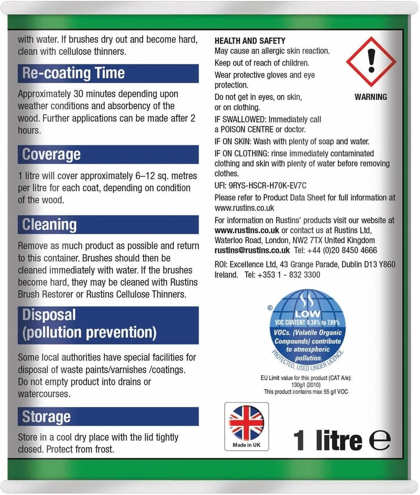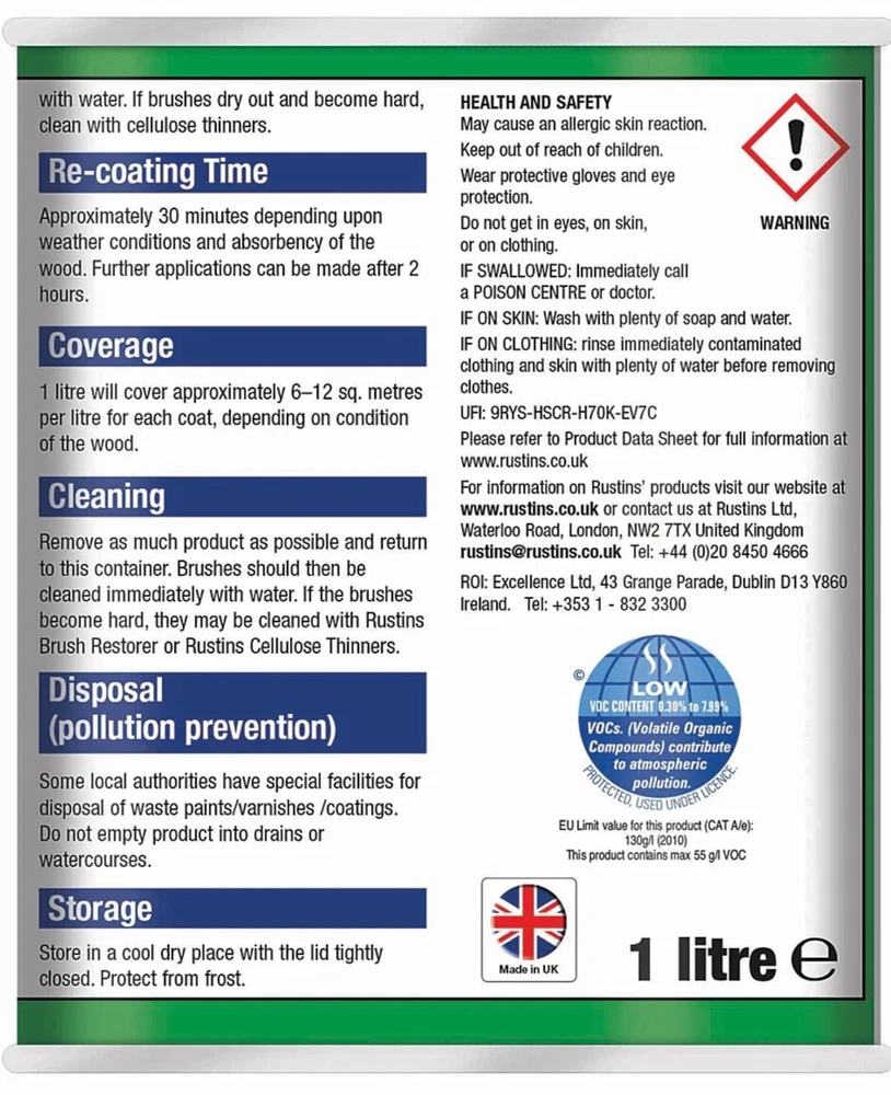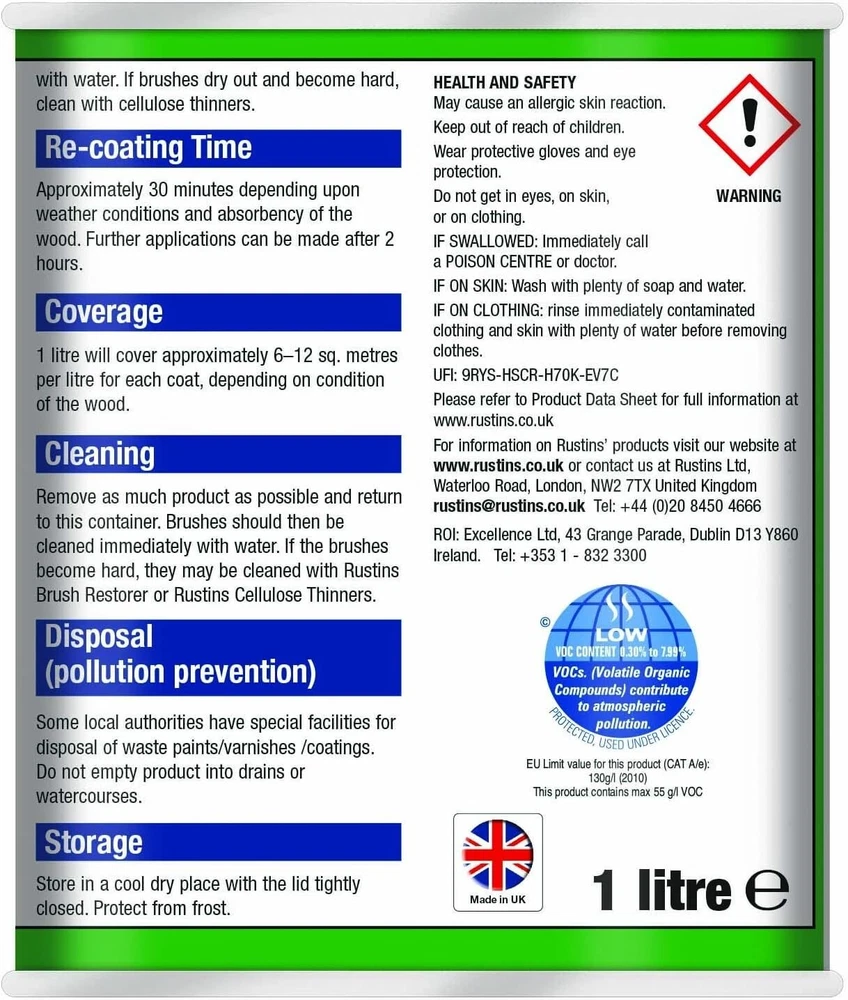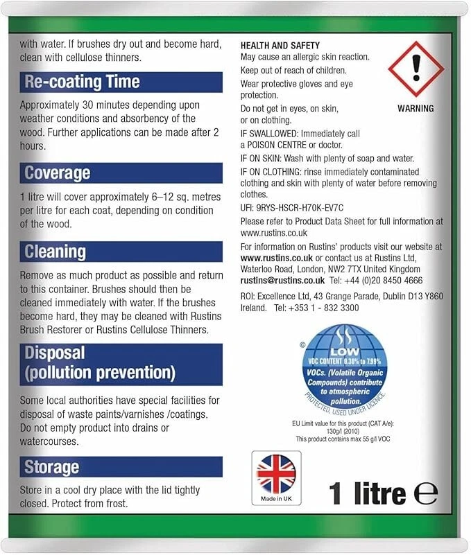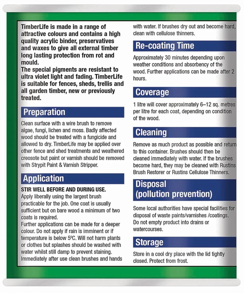 Powered by Frooition Helpful Links Add to Favourite Sellers Sign up to Newsletter View Feedback Contact Seller Visit seller's eBay Shop About Seller Page clearance DIY Tools Home Appliances Outdoor & Garden Kitchen & Homeware Toys & Games Sporting Goods Health & Beauty Baby & Toddler Electronics Musical Instruments Rustins TimberLife 1L Rustins TimberLife 1L Fast Delivery Secure Payments Ask a Question Follow SuperGift More Items! View more great items 2 X 400ML STOVE PAINT HEAT RESISTANT BLACK MATT SPRAY PAINT HIGH TEMPERATURE £12.99 SPRAY PAINTS ALL PURPOSE AEROSOL MATT GLOSS SATIN PRIMER GLITTER NEON METALLIC £5.75-£10.95 300ML WHITE RADIATOR PAINT GLOSS FINISH PAINT TIN QUICK DRYING FOR METAL PAINT £6.99 2 X 300ML BRILLIANT WHITE RADIATOR SPRAY PAINT HEAT RESISTANT QUICK DRY AEROSOL £10.95 Item Descriptio RUSTINS TIMBERLIFE 1L Rustins Timberlife 5 Year Treatment is a durable, water-based wood preservative designed for long-lasting protection of exterior timber. Specially formulated to penetrate and protect garden woodwork such as fences, sheds, pergolas, gates, and decking, it offers up to 5 years of weather-resistant performance in a beautiful, natural finish. The quick-drying, low-odour formula is easy to apply and provides excellent protection against UV damage, moisture, and fungal growth, helping extend the life and appearance of your outdoor timber. Features: ✅ Up to 5 years of protection for exterior wood ✅ Quick drying – touch dry in approx. 30 minutes ✅ Water-based – low odour and easy cleanup ✅ Resists UV damage, rain, and fungal growth ✅ Ideal for softwood and hardwood garden timber ✅ Easy brush-on application ✅ Available in a range of natural wood colours Item Specification Brand Rustins Colour Multicoloured Material Water-based Type Wood Preserver Weight 1L EAN 5015332743032 MPN RUS-TIO-1LT-1 About Us About Us Delivery Returns Terms Contact About Us Discover SuperGift utilising the latest technologies to make your shopping experience even better. Our pages are fully responsive and offer a unique online shopping experience such as frequently bought items and recommended gifts. We want to be the first to know all about your needs, and that's why we have SuperGift online Browse our store and search your next needed product. Delivery Delivery Please be advised that bulk order may require palletising. In the event this occurs, the courier will contact you to discuss how to move forward. If you have any issues, you can also contact us. Please be aware while we guarantee that we will dispatch your order however we cannot be held responsible for any delays with the courier. All orders are dispatched with Royal Mail or DPD local. Dispatch time - Same day if ordered before 2pm (working days only) Important information: We are only able to dispatch your order to the address registered on your PayPal account at the time of payment. Please ensure any address changes are updated prior to ordering. If you live in any of the following regions, your delivery may have a higher cost: Scottish Highlands, Orkney, Shetland and Western Scottish Islands and Northern Ireland. We are not able to ship to: BFPO Channel Islands Republic of Ireland (Eire) Isle of Man Please be aware that in certain circumstances our couriers are unable to deliver to some postcode areas. In this instance we will cancel and refund your order. ? All delivery times are subject to change, especially during peak periods. Returns Returns SuperGift Cancellation Returns and Refunds Policy At SuperGift we strive to ensure that our customers enjoy an outstanding online shopping experience. Occasionally our customers may need assistance and our Customer Services Team will do their best to support and assist in any way necessary. Returning an item to SuperGift I have changed my mind and would like to return my purchase To return an item(s) please notify Customer Services at SuperGift by email via My eBay. Please state the order number and a reason why you may wish to return the product to us. Please allow up to 48 hours for a response. The returned goods do not need to be in their SuperGift packaging however they need to be in their original, sellable condition. Please include a note within the returned package with a reason for return (even if you have just changed your mind) as well as your name and address. Buyers have 30 days to return a product to SuperGift for a refund or an exchange. Return postage is at the buyers own cost and risk. Our returns policy does not affect your statutory rights. Faulty or Damaged Items My item has arrived damaged or faulty If your purchase arrives damaged or faulty, please contact SuperGift within 7 days of receiving the item. Customer Services at SuperGift will be happy to support customers in resolving such issues. You may be asked to provide photographic images of the damage or product fault for Customer Services to investigate and resolve. By providing these, Customer Services can suggest the most appropriate resolutions. If asked to return a damaged or faulty item, SuperGift are responsible for the cost of postage. Customers have 30 days from purchase to return a faulty or damaged item to SuperGift for an exchange (stock permitting) or refund. If you return goods claiming they are defective, we will examine the returned goods and will notify you of your refund via e-mail. We will process the refund as soon as possible. If a refund or reimbursement is payable to you, we will transfer the money using the same method originally used by you to pay for your purchase. Please note, if SuperGift organise for a courier to collect a faulty / damaged item from your home and they are unable to access the item, a fee of £15.00 will be deducted from the total refund given. My item has developed a fault within 30 days of delivery. Within 30 days of the receipt of goods (or for perishable goods within their use by date) you will be offered the choice of a repair, replacement or ful