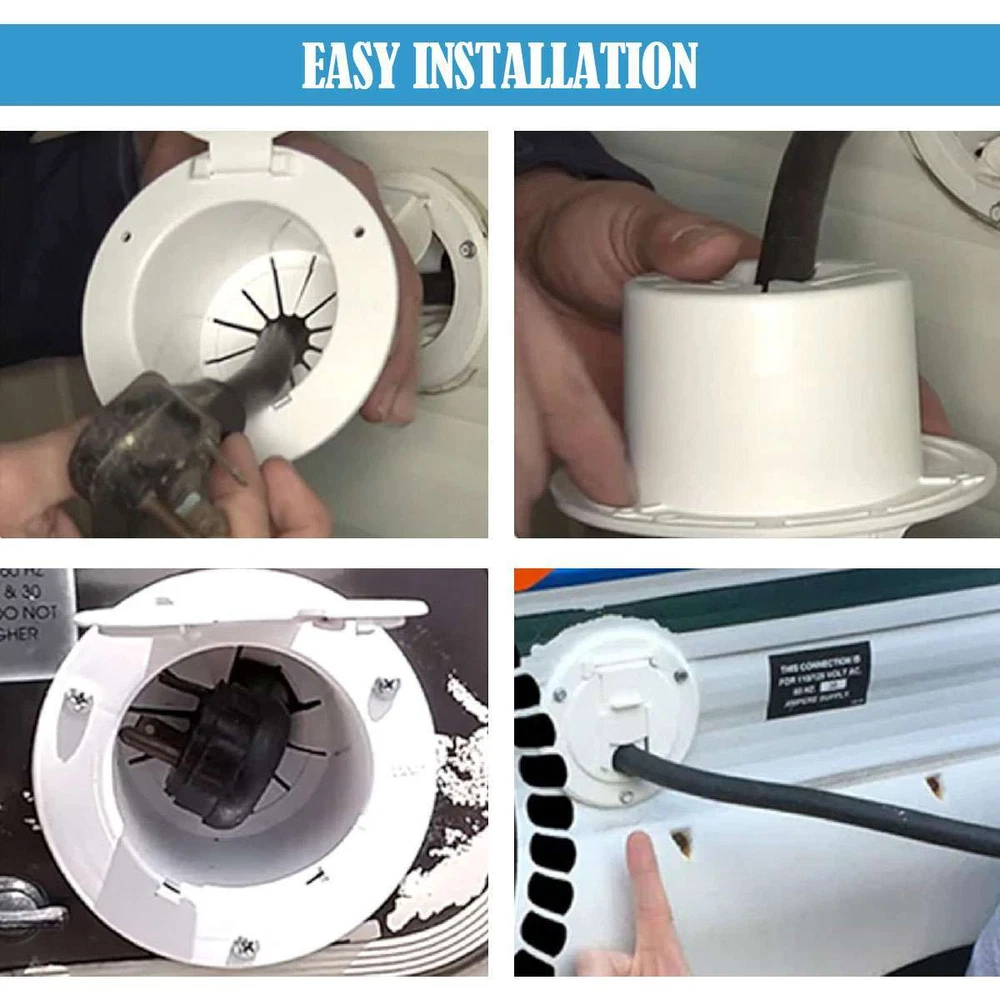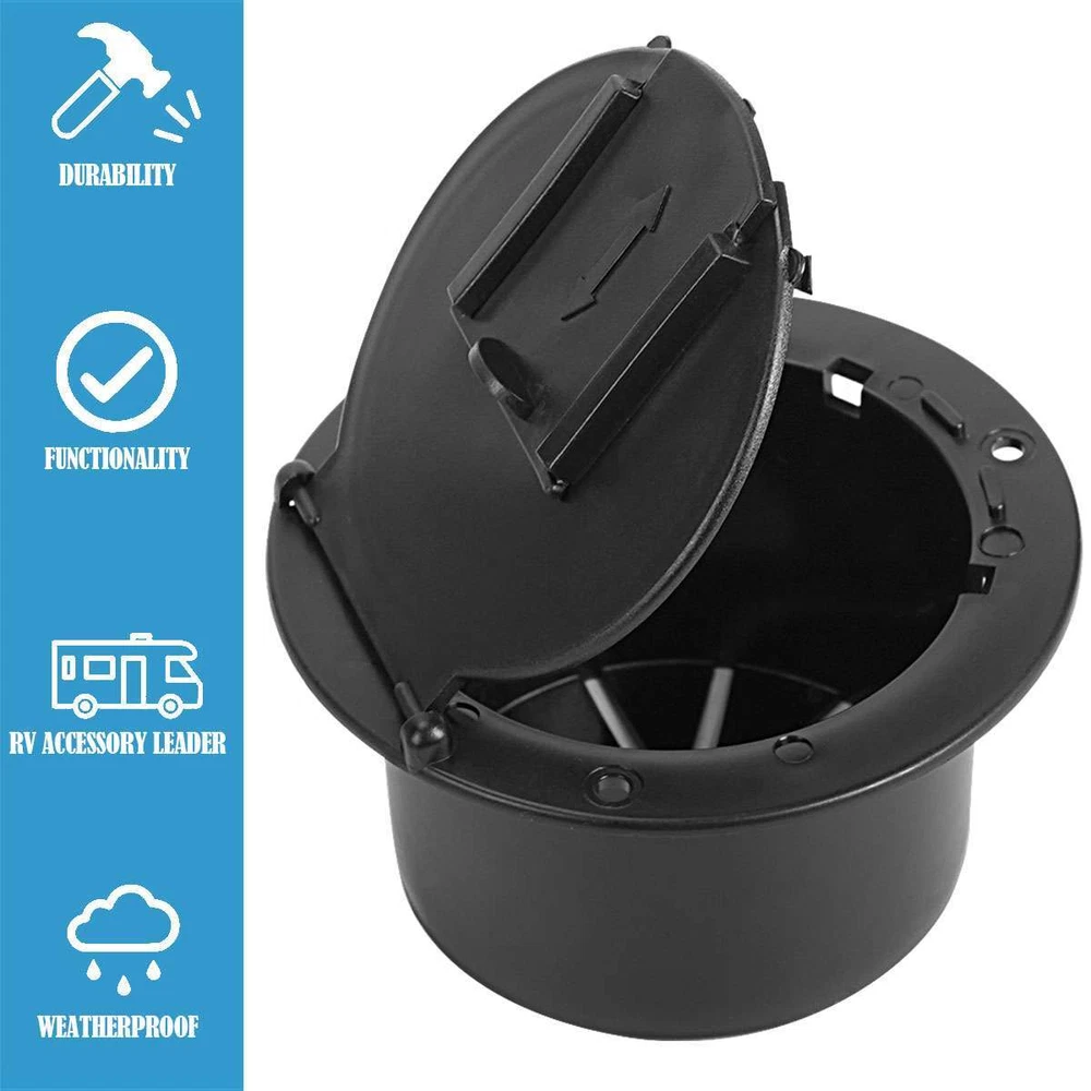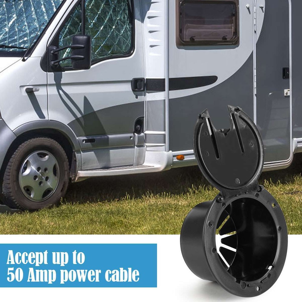 Product Description RV Camper Electric Power Cord Hatch / Cover Sun Fade Protected 50 AMP cord US Specifications: Material: Plastic Optional Color: Black, White Size: 11.2*11.2*6.5cm / 4.4*4.4*2.6in Inner Diameter: 3-1/4in Outer Diameter: 4-1/2in Container Max Diameter: 8.7cm / 3.43in Bottom Middle Hole Width: 1in Slide Door Opening Width: 1in Shape: Round Features: · 4-1/2” round-shaped RV power cord hatch for keeping your RV electrical cord protected and out of your way. · The hatch features a secure cover that snaps securely shut and a 1” sliding door for easiness on using the power cable. · Accept up to 50 Amp power cable. · Made of sturdy plastic for a great durability. · Mounting screws included for easy installation. · Available in black / white 2 colors to match the style of your RV. Notes: * Due to effect of light, camera and monitors, the item’s real color may have slight difference. * Allow slight dimension difference due to manual measurement. * Thank you for your kindly understanding. WARNING for California Residents: This product can expose you to chemicals including Diisononyl phthalate (DINP), which is known to the State of California to cause cancer. For more information, go to: https://www.p65warnings.ca.gov/. Package Includes: 1 X Power Cord Hatch 3 X Screws (Others are NOT included) Payment Shipping Returns PayPal is easy and safe, and we only accept PayPal payment. Please do not hesitate to contact us if you have any questions of payment procedures. Sales Tax: California residents, please add 8.75% for sales tax. Ship To Services Handling time Insurance Tracking Number USA Standard Shipping 1-6 Not include With CANADA USPS First Class Mail \International 5-10 Not include With Items dispatched to buyer's PayPal confirmed address from Monday to Friday (weekend & Holiday excluded) after payment has been received. Please check your shipping address carefully before checkout. If you want to change the address, pls kindly contact us through ebay message within three hours after payment. Otherwise, any change information may be disregarded once dispatched. Postage includes packaging material, shipping label, handling fee and so on. Do not provide local pick up service. Customers must contact us within 7 days to make a refund for all non-used products and buyers should return package with paid shipping label to our warehouse within 30 days since the delivery date.Issurance fee, shipping and handling charges are non-refundable. All NON-Seller's Mistake(E.g buyer change idea,dislike item or buy wrong item)returns for refund or replacement must contact seller first ,then all the problem will be processed.On this case,the buyer are responsible for shipping and handling charge as well as return fee. Any quality problem happened within warranty time, buyer has an obligation to cooperate with seller to verify the item's problem,If need replacement or refund,buyer are responsible for all kind of return shipment. Warranty service is limited to normal usage, any other artificial damage (such as disassembling by user, connecting with non-compatible accessories, not use according to the instruction and any other accident damage.Any maintainance and refit without seller's confirmation and upgrade, crack and the natural scratches on the plastic surface and accessories etc) as well as warranty stick damaged are out of warranty. Please make sure the item is intact and quantity is complete before signing the package or the item will be returned at once. Seller will not responsible for any problems such as breakage and deficiency after buyer signed. Please make a note in a paper with your eBay UserID,purchased date and details of the issue you are experiencing. Payment PayPal is easy and safe, and we only accept PayPal payment. Please do not hesitate to contact us if you have any questions of payment procedures. Sales Tax: California residents, please add 8.75% for sales tax. Shipping Ship To Services Handling time Insurance Tracking Number USA Standard Shipping 1-6 Not include With CANADA USPS First Class Mail \International 5-10 Not include With Items dispatched to buyer's PayPal confirmed address from Monday to Friday (weekend & Holiday excluded) after payment has been received. Please check your shipping address carefully before checkout. If you want to change the address, pls kindly contact us through ebay message within three hours after payment. Otherwise, any change information may be disregarded once dispatched. Postage includes packaging material, shipping label, handling fee and so on. Do not provide local pick up service. Returns Customers must contact us within 7 days to make a refund for all non-used products and buyers should return package with paid shipping label to our warehouse within 30 days since the delivery date.Issurance fee, shipping and handling charges are non-refundable. All NON-Seller's Mistake(E.g buyer change idea,dislike item or buy wrong item)returns for refund or replacement must contact seller first ,then all the problem will be processed.On this case,the buyer are responsible for shipping and handling charge as well as return fee. Any quality problem happened within warranty time, buyer has an obligation to cooperate with seller to verify the item's problem,If need replacement or refund,buyer are responsible for all kind of return shipment. Warranty service is limited to normal usage, any other artificial damage (such as disassembling by user, connecting with non-compatible accessories, not use according to the instruction and any other accident damage.Any maintainance and refit without seller's confirmation and upgrade, crack and the natural scratches on the plastic surface and accessories etc) as well as warranty stick damaged are out of warranty. Please make sure the item is intact and quantity is complete before signing the package or the item will be returned at once. Seller will not responsible for any problems such as breakage and deficie