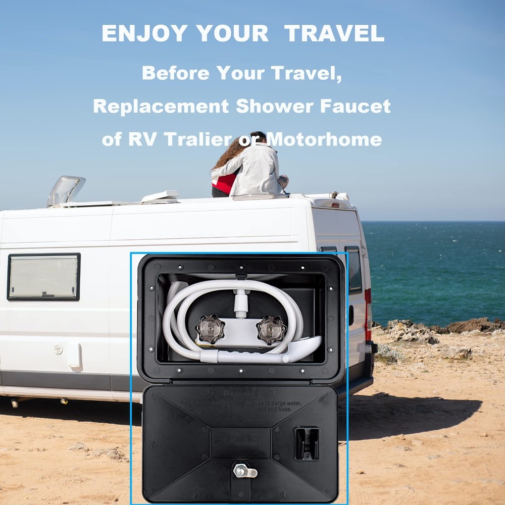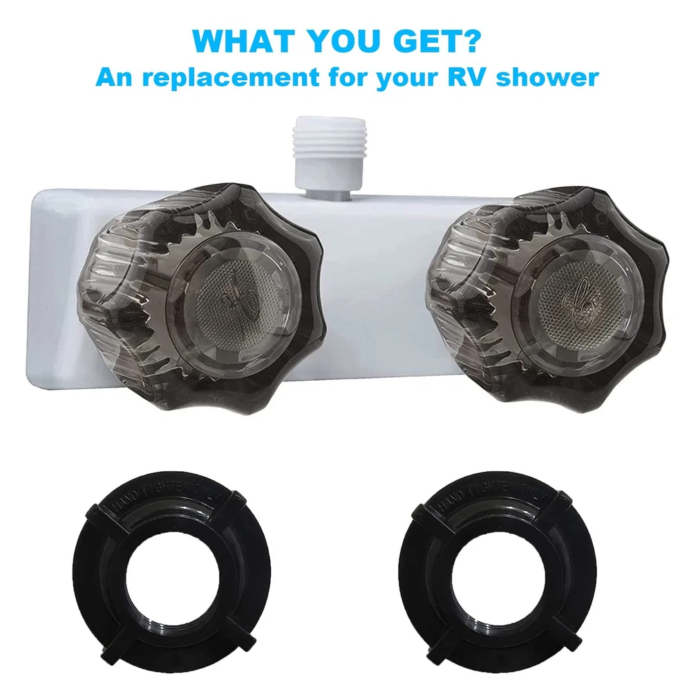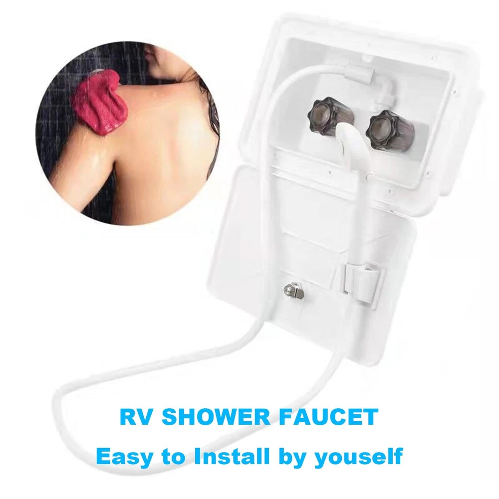 RV Shower Faucet, 4" RV Shower Faucet Valve Diverter,Camper Shower Faucet for RV/Motorhome/Trailer, Dual Smoked Acrylic Knobs Shower Faucet (White) [Choose Us] When you want to update your shower hardware, please choose our 4" RV Shower Faucet Valve Diverter for RV, camper, motorhome, travel trailers. Inside shower faucet or outside shower faucet. Features: 1.RV Shower Faucet is perfect suit for RV, camper, motorhome, travel trailers. 2.RV shower faucet with dual knobs to quickly adjust temperature and aerated water pressure. 3.Good size and classical design also fit the tighter spaces in outside and inside of RV shower. 4.Easy install faucet for rv on the inside shower or outside shower without a plumber. 5.Dual knob faucet comes with a durable easy-to-turn design, and provides a desired smooth turning action and unwanted dripping. Specifications : Works on any 2-hole, 4” center to center installation. The valves are 4 inches apart for stander rv bathroom.The diverter accommodates all standard shower hoses. : If you have any question about the shower faucet for rv, please e-to us. Every shower faucet for rv be backed 24 mouths ,by it confidence. Package Include: 1x RV shower faucet 2 x Installation nuts and washers 【Perfect rv shower faucet :】This shower faucet is an easy install when you want change your old RV shower faucet.Easy install shower faucet for rv without plumber.This faucet is UPC and CUPC Certified. 【Indoor or Outdoor Use:】This 4" RV shower valve diverter suit for rv/ camper/ motorhome/ trailer/boat. It is a shower valve diverter for Indoor bathroom shower faucet.Indoor or outdoor shower faucet. 【Good Size:】This rv camper shower faucet works on any 2-hole, 4”center to center installation. this diverter accommodates all standard shower hoses.It was made with a recreational vehicle’s space in mind,there is enough space in your shower toaccommodate this faucet. 【Safe to Use:】 This RV shower faucet with dual smoked acrylic knobs operation. The dual knobs faucet are easy to turn and work smoothly which provide precise temperature control and aerated water pressure.Be safe to use it. 【Package Include: 】You will get a RV shower faucet valve diverter, every diverter is backed by 24-months . Buy it now to update your shower hardware.If you have any question, we will stand by.