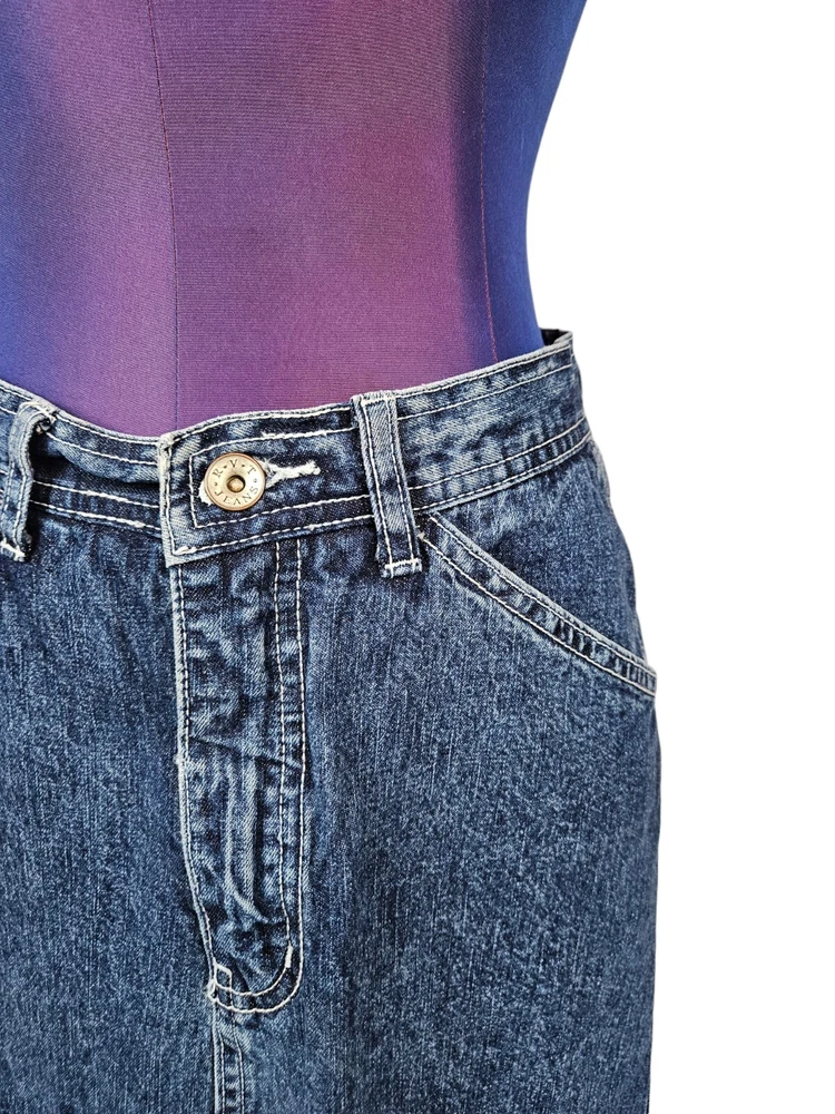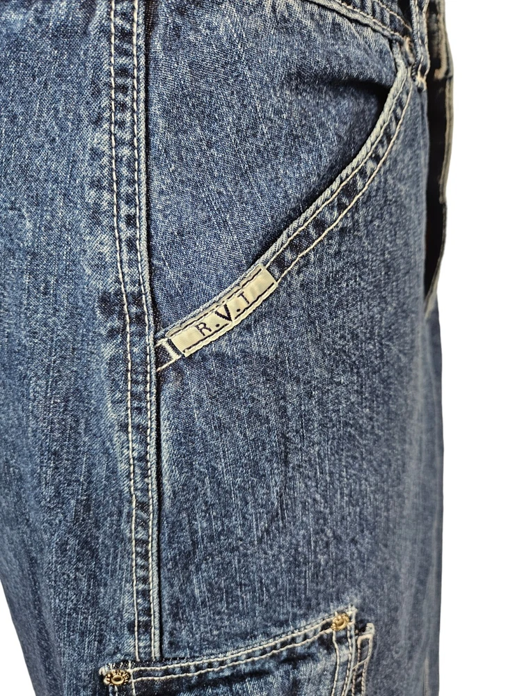 R.V.T Dark Wash Cargo Denim Maxi Jean Skirt Y2K Baggy Style Size 5/6 Women's C58 In excellent condition R.V.T Dark Wash Cargo Denim Maxi Jean Skirt Y2K Baggy Style Size 5/6 Women's. A true wear-with-everything classic, this timeless style pairs perfectly with your favorite tee or strappy tank for endless ways to wear. Features dark wash denim cargo maxi jean skirt, a-line silhouette, rigid denim, zip fly with button closure, 2 front slip pockets, 1 side cargo pocket with flap, 1 back pocket with flap, seam at front, back slit, belt loops, high waisted, Y2K style, baggy slouchy look, 90s jean skirt. Measurements laying flat waist 14" hips 19.5" length 33.5" Fabric 100% cotton This is a pre-owned item that may show signs of wear. In excellent condition, no flaws.