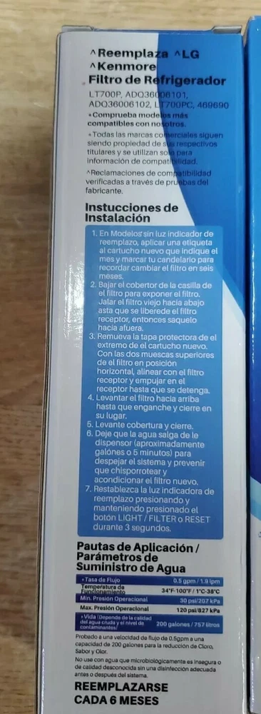 RWF1200A Refrigerator Replacement Water Filter LG Kenmore. Cleans Water for Refrigerator