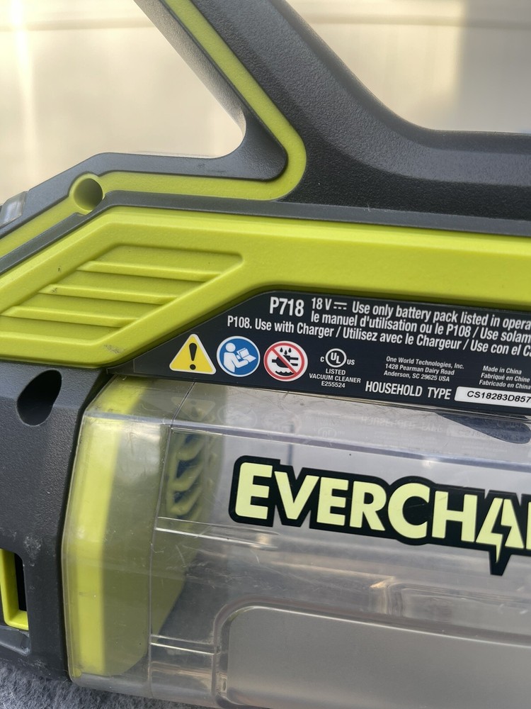 Filters: Reusable MPN: P7181 Type: Stick Color: Green Voltage: 18 V Features: Battery Operated, Portable Bagged/Bagless: Bagless Item Weight: 11.23lbs Model: Ryobi ONE+ P7181K Smart Home Compatibility: No Brand: Ryobi Cord Type: Cordless