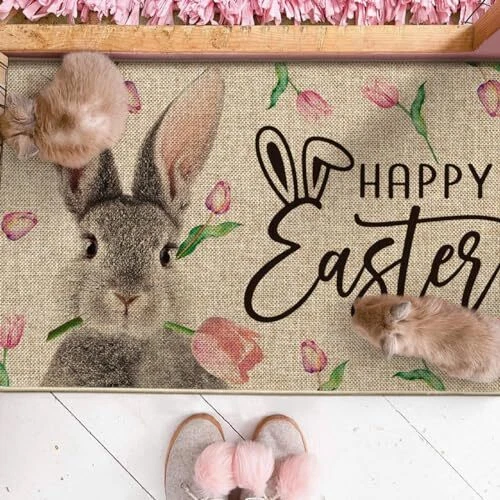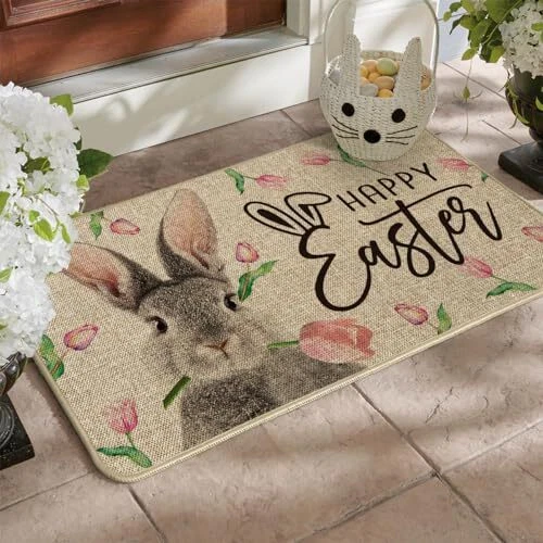 Return Policy Fast Delivery Trusted seller Rabbit Flower Happy Easter Doormat, Seasonal Spring Home Decor Low-Profile Switch Rug Door Mat Floor Mat for Indoor Outdoor 17x29 Inch Product Description PERFECT FOR HOME DECOR : Welcome guests to your home with this unique, seasonal doormat. Perfect for any deck, patio, porch, veranda, and entryway and extend a warm welcome to all who enter your home DURABLE AND NON-SLIP : Backed with non-slip recycled rubber and topped with polyester felt that is low-profile to reduce chances of tripping, high-quality durable construction that is stain resistant LOW-PROFILE DESIGN : Measures 17" x 29" and features 0.25" slim, making it just the right size for every entryway. Our stylish doormats make a beautiful addition to your entryways, craft rooms, and office spaces EASY TO CLEAN : No scrubbing needed. Doormats are quick and easy to clean, just spray off with a hose or use a sponge and mild detergent to clean off dirt or yard debris. Material: 5% Polyester 95% Rubber. Imported, Country of origin: China UNIQUE CUTE DESIGN : Doormat tops were printed with unique and stylish patterns. A beautiful and creative way to decor your home when keeping clean Shipping Returns Payment Shipping Shipping is FREE to all addresses other than APO/PO boxes in the lower 48 states. All our stock ships from US-based warehouses. Shipped via USPS or UPS (depending on location and package weight) Unless stated otherwise, all orders will ship within 24-72 hours of your payment being processed. Check our feedback to see the great reviews of FAST shipping we offer. Returns Seller does not accept returns Payment We currently accept payment via eBay managed payments only. Once payment is cleared, we will dispatch your shipment within 1-3 business days. Please refer to the "Shipping" tab for more information regarding shipping speed to your destination.