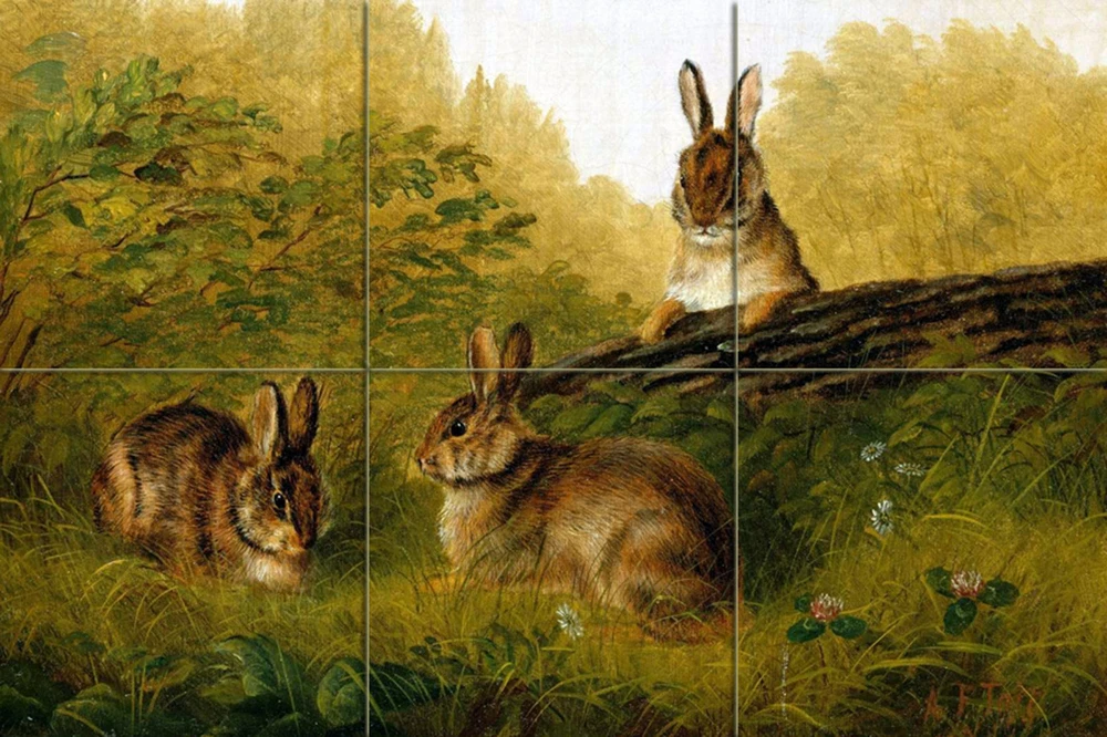 Rabbits on a Log Tile Mural Kitchen Bathroom Wall Backsplash Marble Ceramic