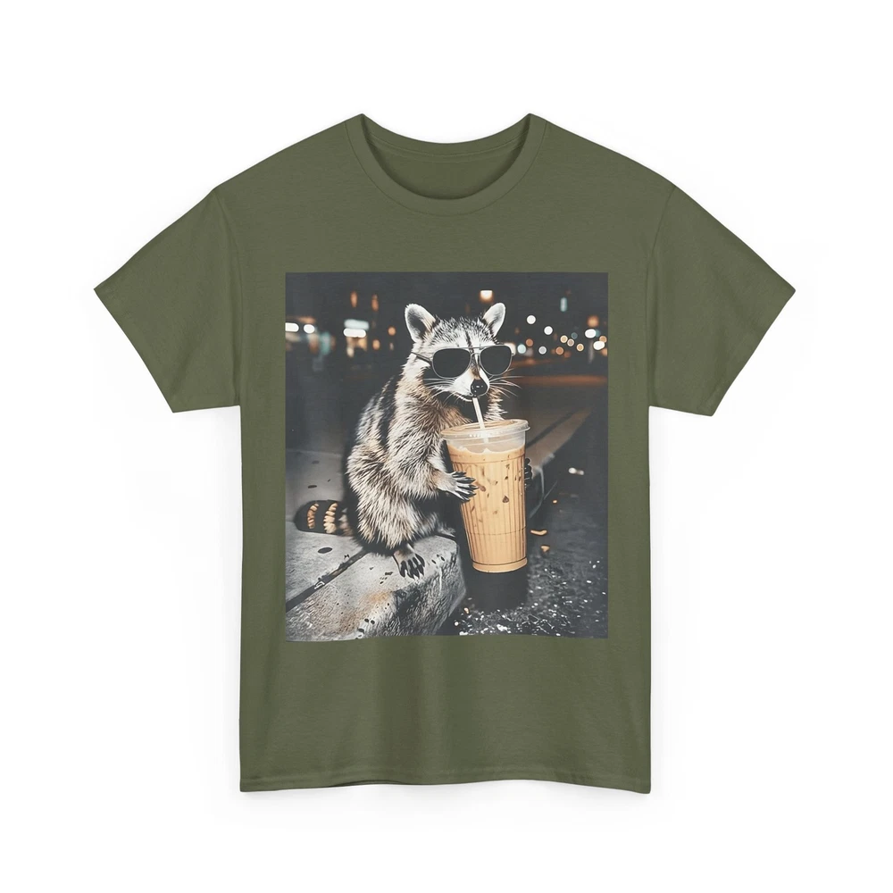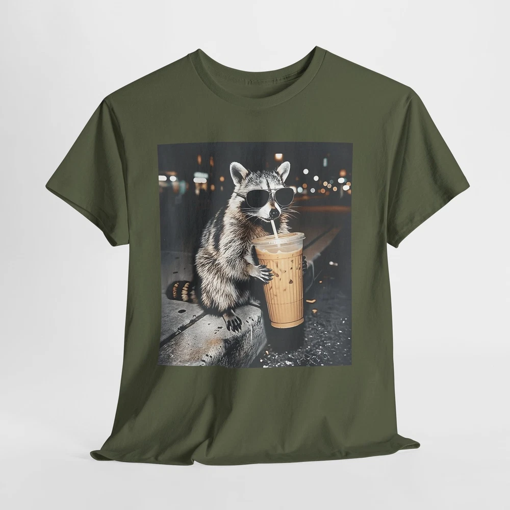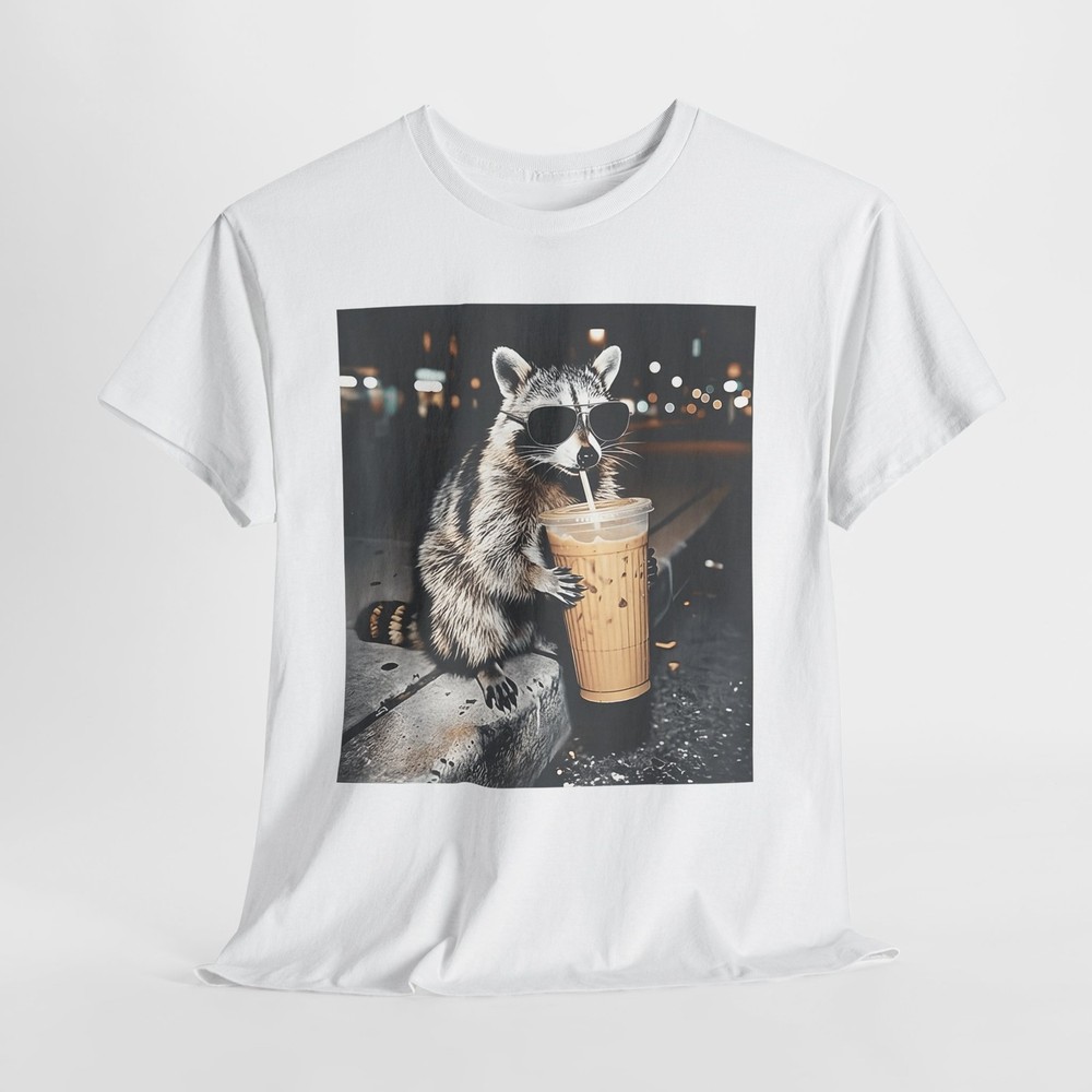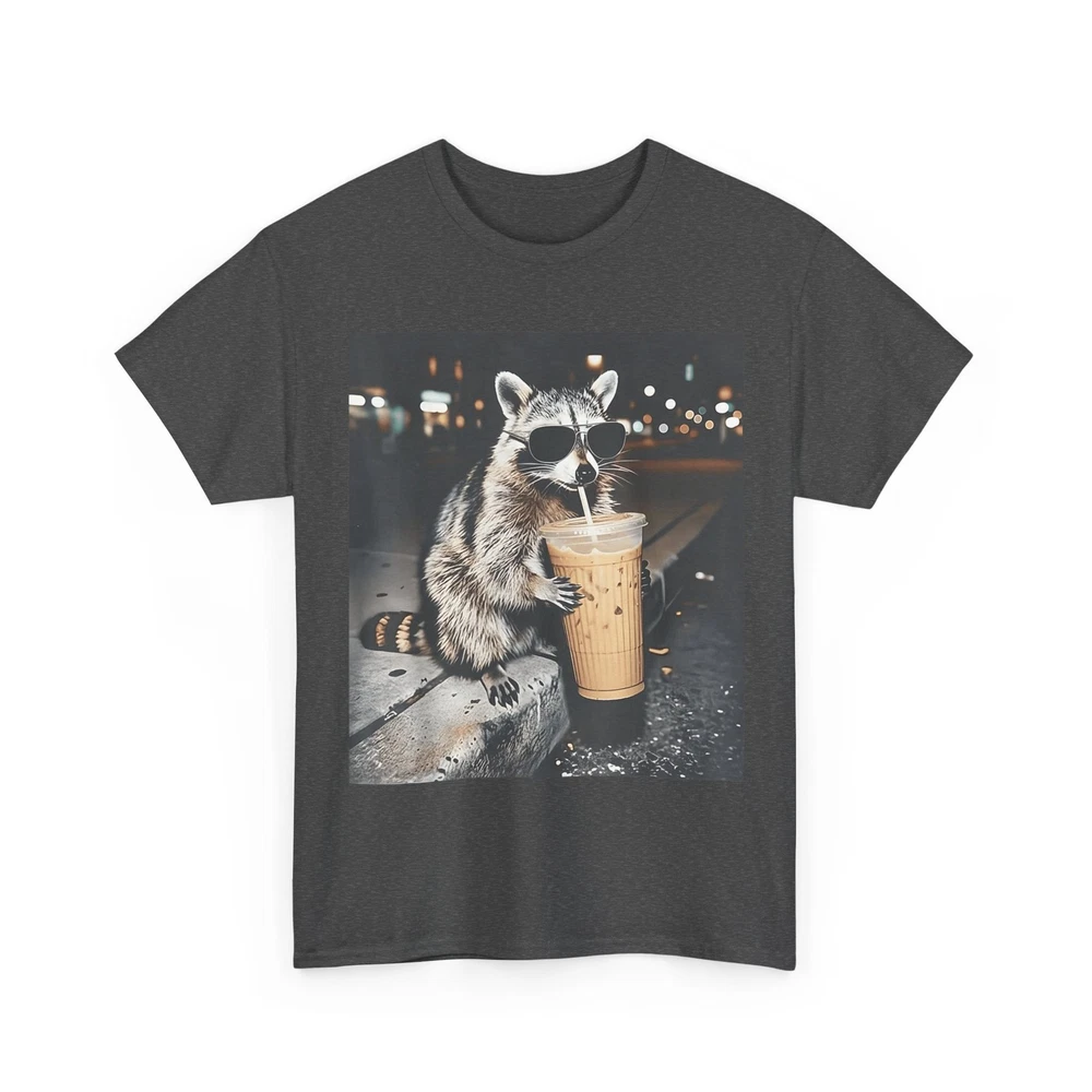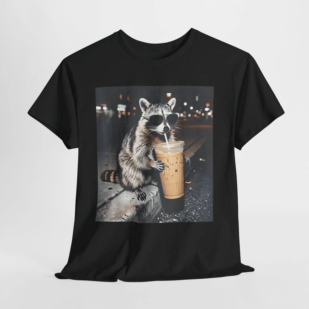 Raccoon shirt. Raccoon lovers shirt. Raccoon animals memes shirt. Raccoon shirt for women. Raccoon shirt for men. Raccoon drinking iced coffee shirt. Funny design shows raccoon drinking iced coffee. Perfect for women, men, raccoon lovers, animals memes fans.