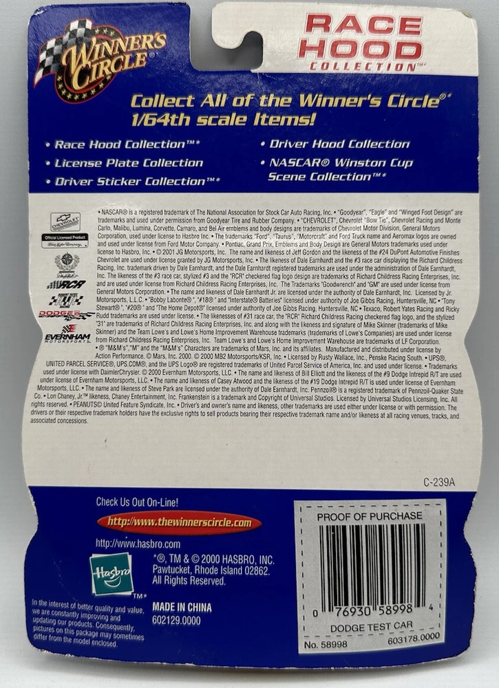 HomeRace Good Collection Dodge Intrepid Test Team Winner’s Circle Hasbro 2000