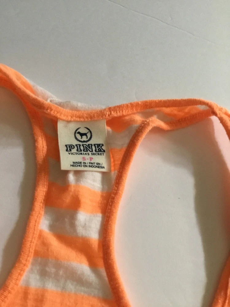 PINK. Orange/white stripe Racerback shirt. Small-P