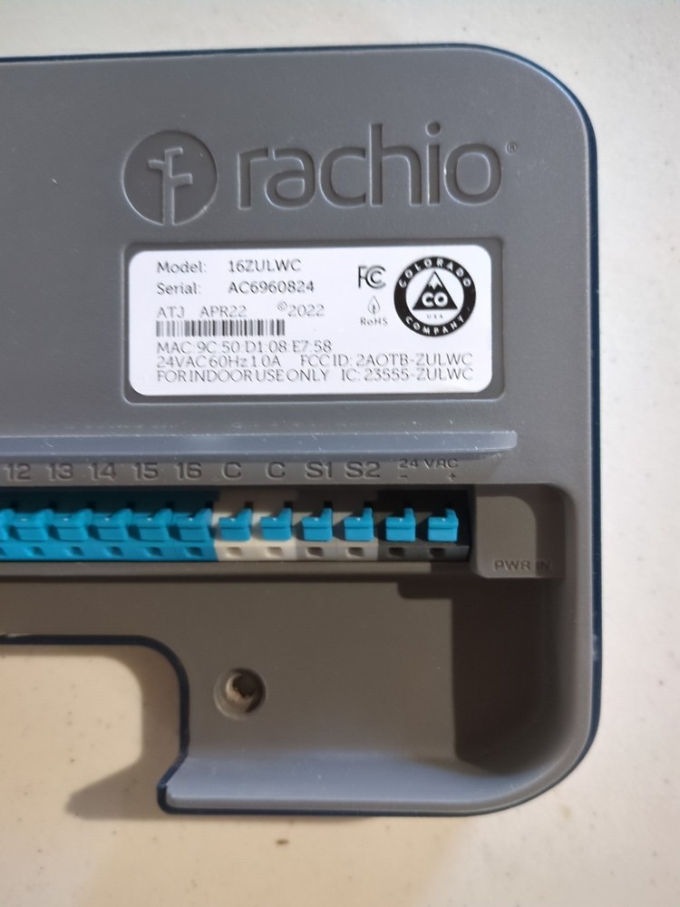MPN:8ZULW-C, 8ZULWCSuitable For:SprinklerItem Width:1.4 inNumber of Items in Set:1Smart Home Compatibility:Apple HomeKit, Alexa, IFTTT (If This Then That), Google Home/Assistant, Amazon Alexa, Siri, Samsung SmartThings, HomeKitIndoor/Outdoor:Indoor & OutdoorSmart Home Protocol:Wi-FiFeatures:Smart Sprinkler ControllerNumber of Outlets:1Type:Sprinkler ControllerNumber of Watering Programs:8Color:WhiteControl Style:App ControlUPC:0680140538863Model:Rachio 8-ZoneBrand:RachioNumber of Zones:8Power Source:Cordedgtin13:0680140538863Product Line:Rachio R3