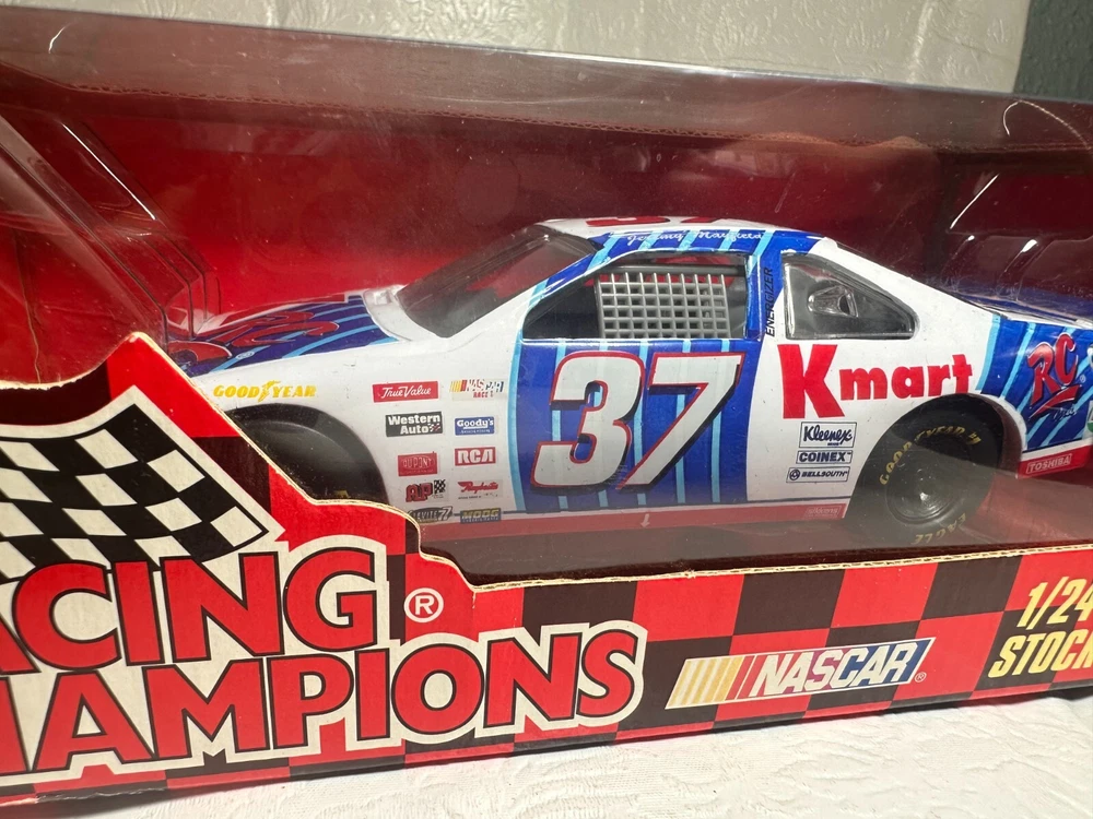 This Racing Champions #37 Jeremy MayField KMart 1997 1:24 NASCAR Diecast car is a must-have for any NASCAR fan or collector. This limited edition, unopened box model is a perfect addition to your collection. The car is made of high-quality diecast material and features a detailed design of the NASCAR racecar. The car is from the K-MART RTC698 model series and features the name of the driver, Jeremy Mayfield, along with the team logo and sponsor logos. This 1:24 scale model is a great representation of the iconic NASCAR racecar and is sure to impress any fan. Add this piece to your collection today!