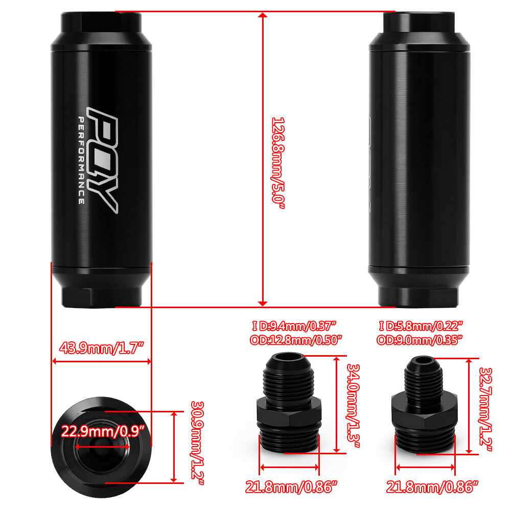100 Micron Fuel Filter Inline 6AN 8AN Universal High Flow Billet Aluminium Black Description Made of high-quality aluminum with fittings that have a hard anodized finish, corrosion resistance, sturdy and durable. Rated to handle up to 250PSI Fuel Pressure, designed to provide excellent high volume fuel system filtering. 40-micron reusable filter element (element is 44mm in diameter), ideal for keeping unwanted particles out of your fuel system. Cleanable and washable stainless steel filter screen, very convenient to use. Universal application for vehicles running Petrol, E85/Ethanol, or Methanol/Alcohol. Inlet size: AN8/ AN6. Outlet size: AN8/ AN6. Element Size: 100 Micron. Overall length: 127MM. Outside diameter: 44MM. Application: Vehicle Fitment: Universal, can work with Fuel Petrol Gasoline. etc (Perfect for combine Walbro & External Fuel Pump And other Fuel Pump too.) Please check it before the order to avoid further inconvenience. Thank you for your help. Specifications Condition: 100% Brand New Color: As the picture Material: Made of high-quality Aluminum and Stainless Steel. Package Included: 1x Fuel Filter 2x AN6 Fitting Adapters 2x AN8 Fitting Adapters As pictures shown NOTE • Provide a tracking number with every order, please buy with confidence! • Please allow differences due to manual measurement. • No installation guides are included, we highly recommend seeking professional installation. • The color of the actual items may be slightly different from the listing images due to different computer screens. • For any inquiries, please write to us. 💯After-Sales Shipping🚚 💰Payment Q & A💬 Contact Us📧 💯After-Sales For any installation or usage issues, please send us photos or videos for assistance. If you are unsatisfied, please contact us before leaving feedback. We are committed to resolving any issues and ensuring customer satisfaction. We offer free returns and exchanges within 30 days of purchase. If you need to return an item, please select "didn't like them" as the reason to ensure prompt processing. Thank you! Shipping🚚 We ship your order within 2 business days of receiving full payment. Delivery typically takes 3-7 business days to most cities. Domestic orders are shipped via USPS, UPS, or FedEx from our US warehouse and usually arrive within 3-5 business days. We ship to the address on your eBay account, not your PayPal account. Please update your eBay shipping address during checkout if it's different. We provide a tracking number for online shipment status updates. 💰Payment PayPal is the preferred payment method. Orders will be shipped after payment clears. Payment is expected within 7 days; otherwise, an Unpaid Item Dispute will be filed with eBay. Q & A💬 Q: When will the item be shipped out? A: This item will be shipped within 2 business days once payment is completed. Q: Where is my tracking number? A: Please log in to your account, click "my eBay"-->"my summary", or open your email box and find the shipping notification email. Q: How do I return an item? A: Our store accepts returns. Items must be returned within 60 days. Refunds will be given as money back. Please contact our customer service before you return an item. Contact Us📧 If you have any questions, please contact our Customer Service Team by clicking "Contact seller" in "Seller information". Emails will reply within 1 business day during business hours.