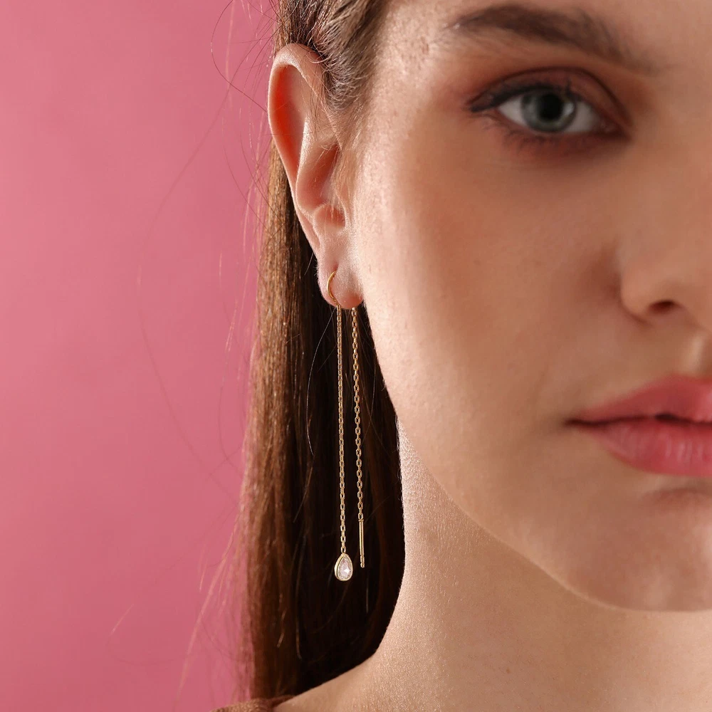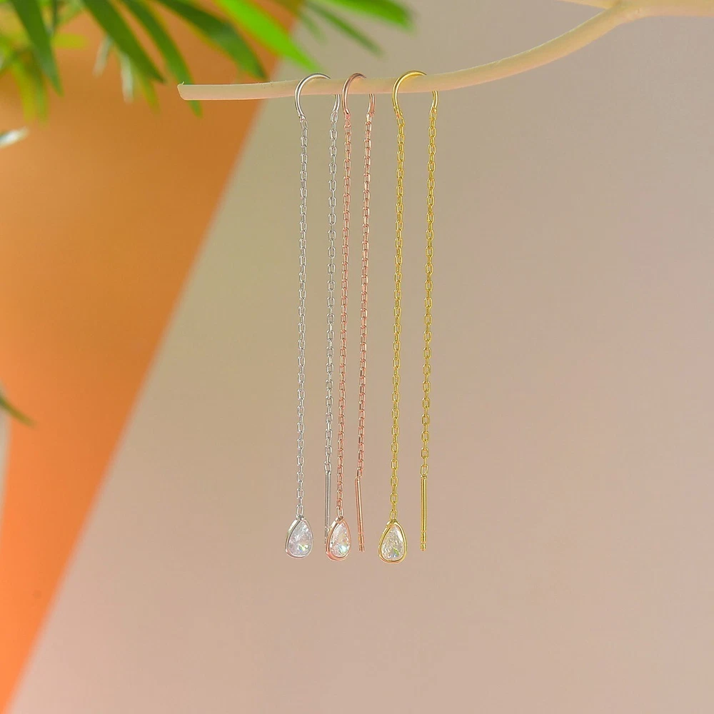 Materials: Silver Gemstone: Zircon Jewelry style: Minimalist Made to Order Gift wrapping available 'The Radiant Elegance Drop Earrings captivate with their elegant and modern design. Made of silver, these earrings offer a sophisticated look with a sparkling drop-cut zircon stone at the end of a delicate chain. Whether adding a touch of elegance to your daily outfits or complementing your grace on special occasions, you can choose the one that best suits your style with options in gold, silver, and rose gold. These earrings, which shine with every movement, are a perfect choice for those seeking a minimalist and stylish accessory.'🍀