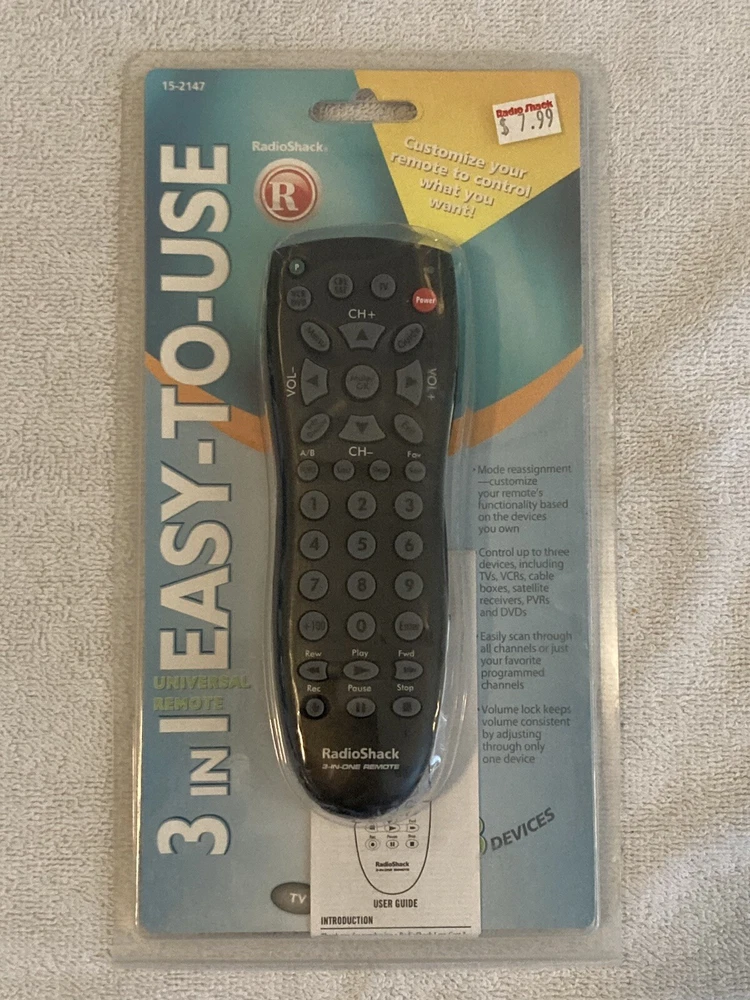 Radio Shack 3 in 1 Easy to Use Universal Remote Control 15-2147 New Unopened New Unopened