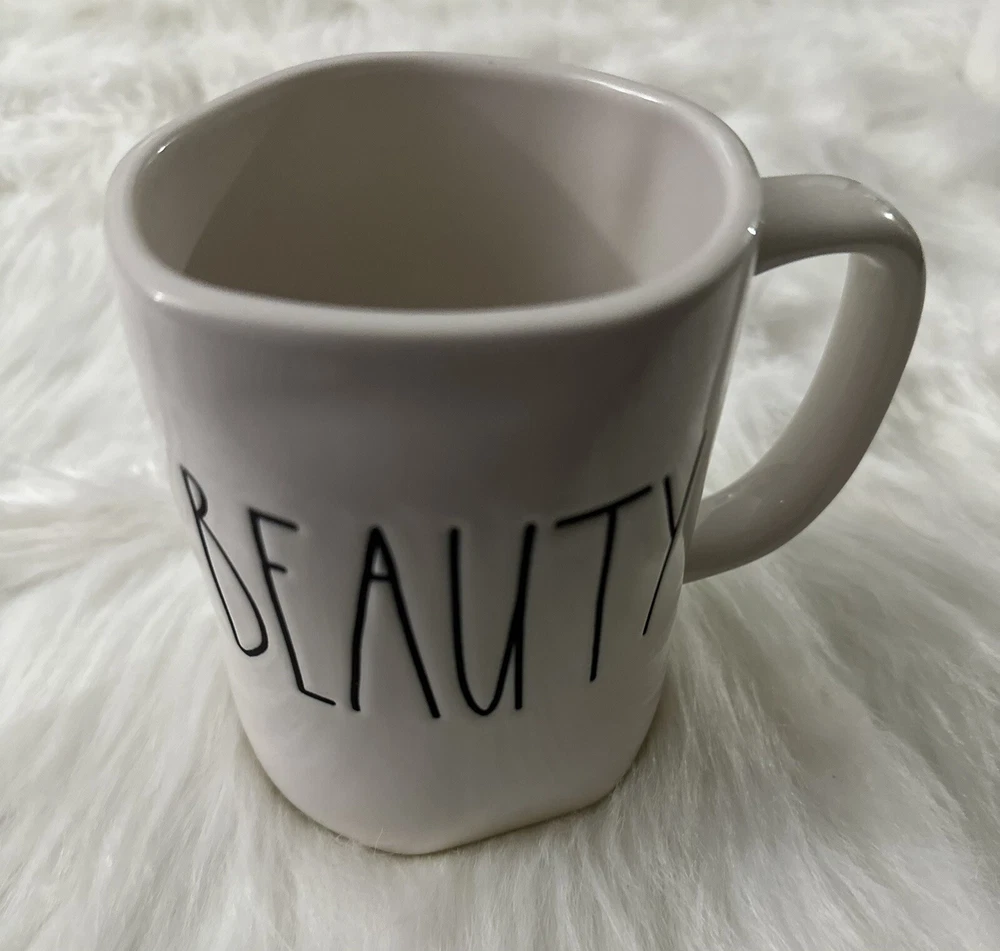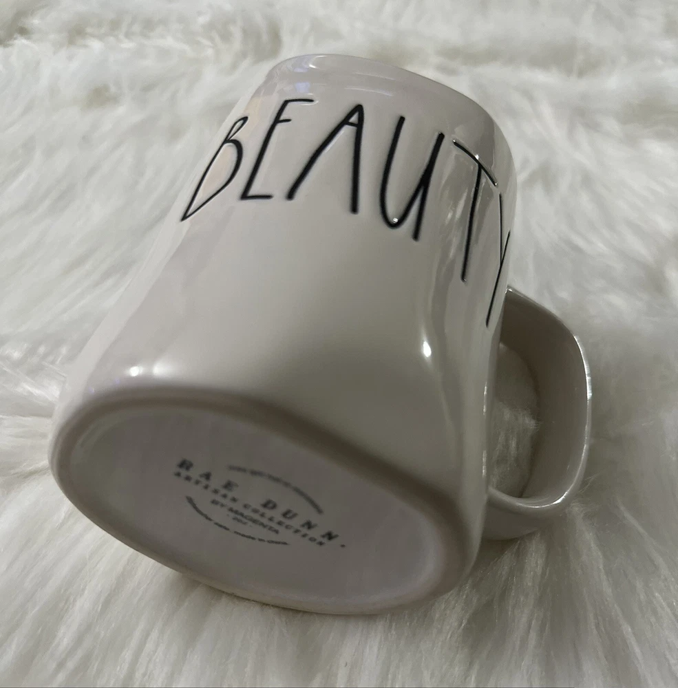 The Rae Dunn BEAUTY Large Letter Coffee Mug is part of the Artisian Collection and features a contemporary design with a white ivory color. Made of ceramic, this 20 fl oz round mug is ideal for all occasions. The mug showcases the word "BEAUTY" in large letters, adding a touch of elegance to your kitchen or dining area. Perfect for enjoying your favorite hot beverages in style, this novelty mug is a stylish addition to any home. Excellent Condition Please view photos for exact item condition