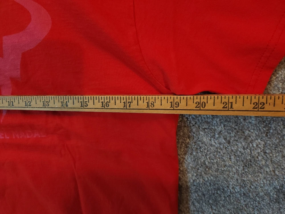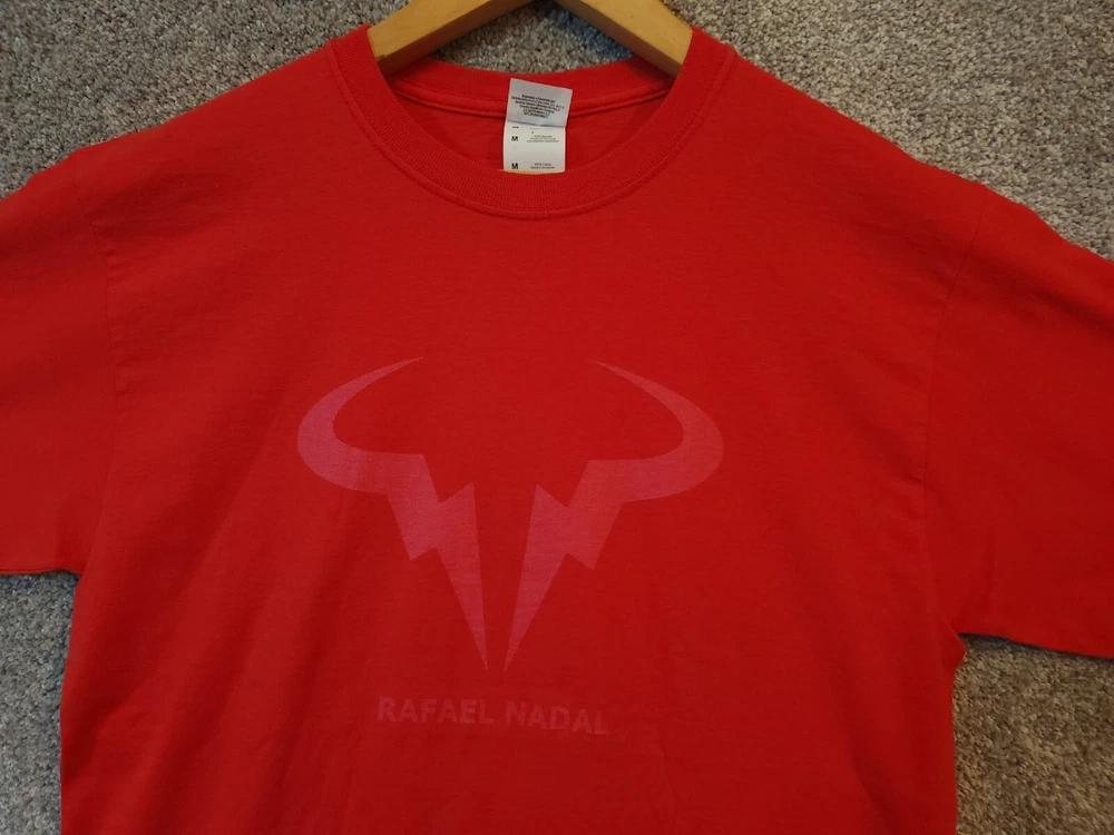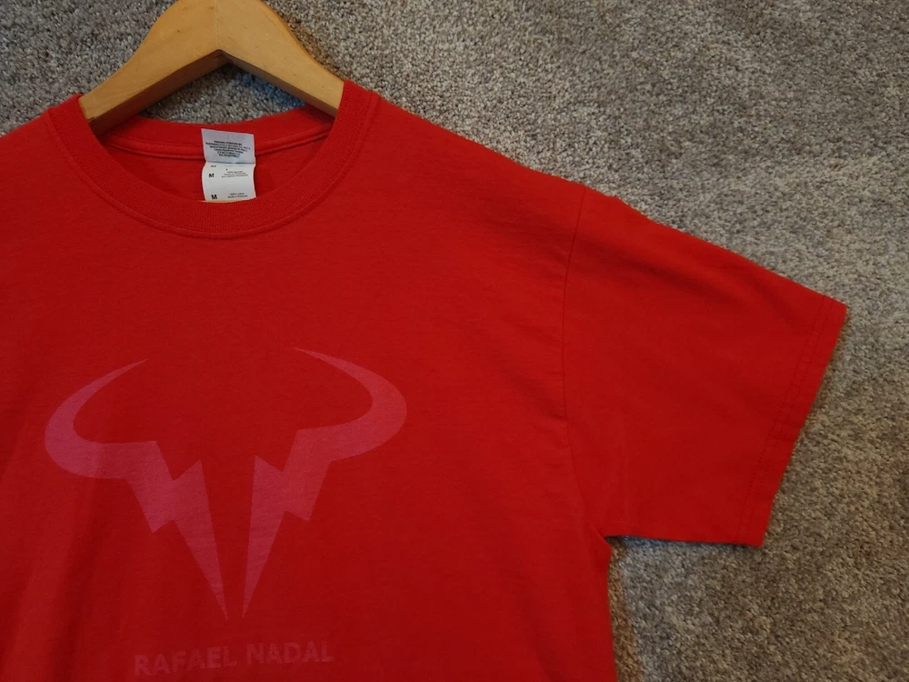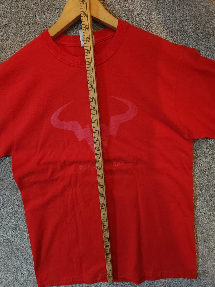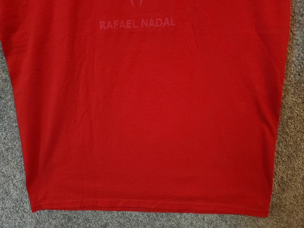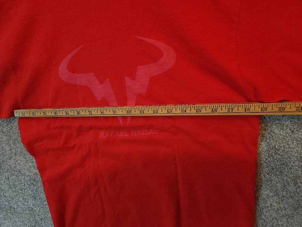 For Sale- Rafael Nadal Shirt Mens Red Bull Logo Tennis. Size- S , Tag says Medium, but measurements are Small. Measurements: Please see photos for all measurements to ensure desired fit. Good Pre-owned Condition. Graphic is faded.