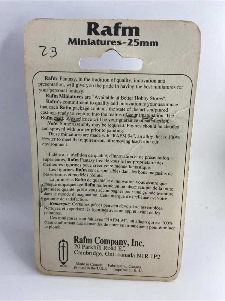 Rafm Miniatures - Fantasy - #3853 The Ghost Rider (mounted) Includes 1 miniature when assembled Package in excellent condition Out of print vintage detailed miniature Great addition to any Undead Vampire Chaos Monster army / diorama / collection Add this model to your next campaign Buying multiple Items reduces the cost of shipping per Miniature Combined shipping available when purchasing multiple items *(applies only to auctions ending the same day, please contact me for any exceptions) *(combined shipping invoice sent no later than 24hrs after auction completion) *Please wait for a combined shipping invoice, it will allow for shipping costs to be more accurate Shipments typically on Tuesday and Friday after payment If Items are not paid for withing 5 days of purchase items will be relisted Warhammer fantasy, AD&D, D&D, diorama, war game, lead figure, Vintage, sealed blister pack, collectable, age of Sigmar, fantasy roleplaying, Lord of the Rings