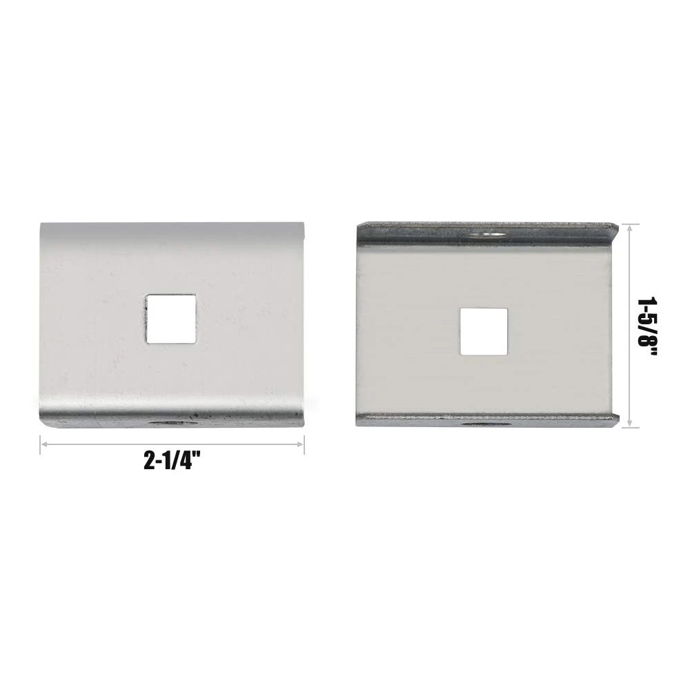 Box rail hanger kit is made of steel,zinc-plated finish,durable, rust, weather resistance and long-lasting use 2 End caps and bolts for attaching door strap and self-lubricating derlin bearings,easy installation with mounting hardware and instructions included Adjustable both laterally and vertically, The sturdy plates quickly mount to your door and the adjustment bolts are easy to adjust the drop of the door to ensure a good fit The BOX RAIL HANGER KIT is a full, all in one hardware kit for simple hanging, sliding doors. It will withstand out door extremes, a perfect application for garages ,sheds,wood sliding doorsand green houses. Use on wood frame sliding doors from 1-1/2" to 2" thick.Suitable for: Track size 2-1/4 In. x 1-3/4 In The box rail hanger kit consists of 2 sets,safe working load - 225 lb. per hanger