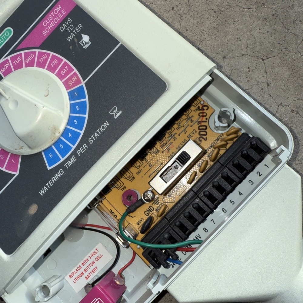Control Style:DigitalBrand:Rain BirdModel:Rain Bird ESP-TMNumber of Watering Programs:6Power Source:Wall Plug-InType:Sprinkler ControllerNumber of Zones:6Material:PlasticIndoor/Outdoor:IndoorNumber of Outlets:1