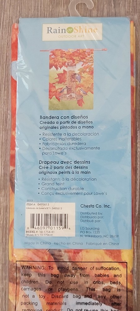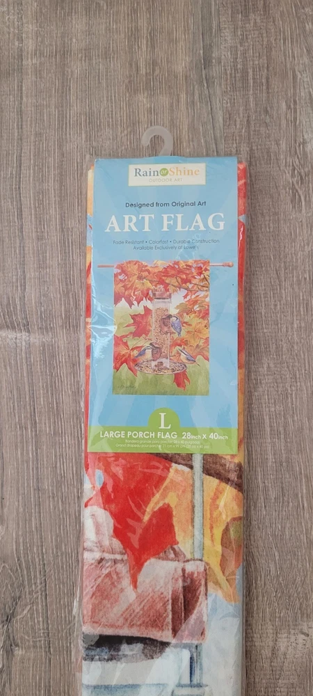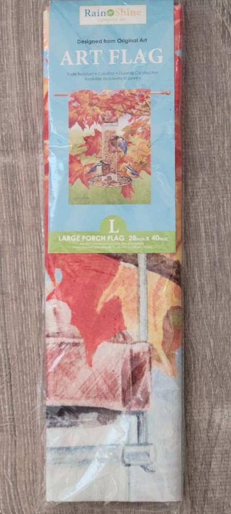 Show off your love for fall with this Rain or Shine double-sided porch flag. Measuring 28" x 40", this flag features a colorful design of nuthatches and is made with fade-resistant, colorfast materials. Perfect for Thanksgiving or any fall occasion, this flag is sure to brighten up your outdoor space. MX3